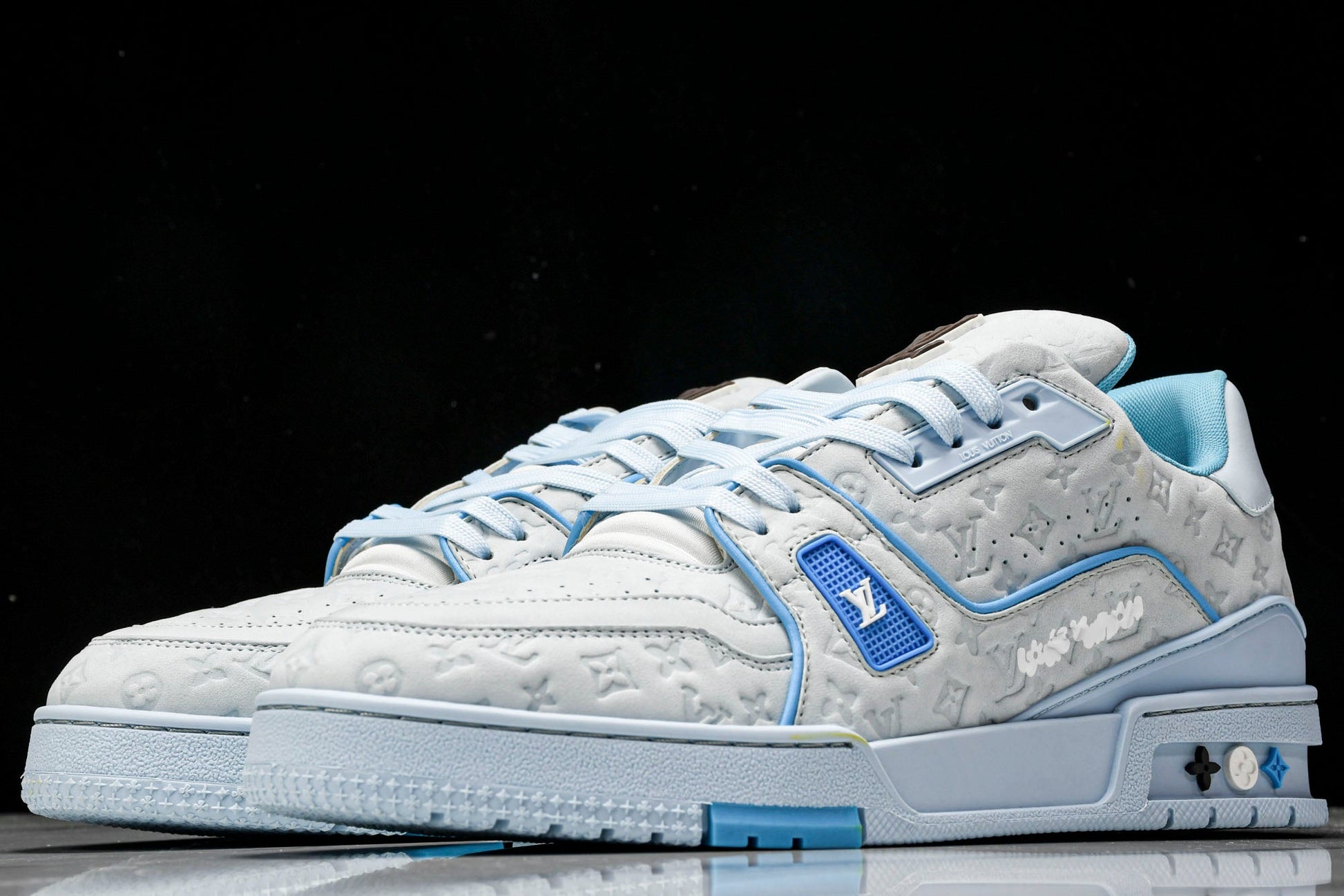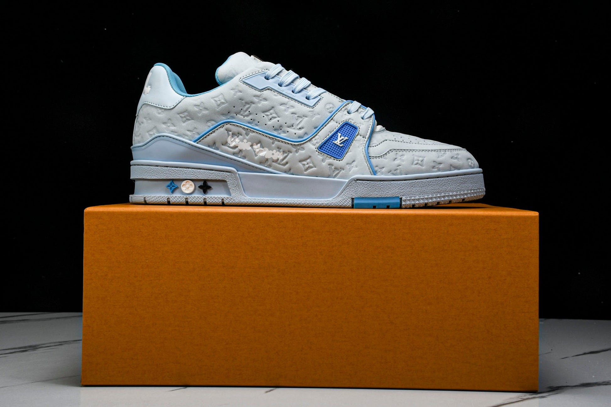 The Louis Vuittоп Trainer by Tyler, The Creator 'Blue' is already one of the hottest collabs of the year, epitomizing a bold blend of modern design and luxury craftsmanship. This striking edition captivates with an all-blue hue, showcasing the vibrant aesthetics of Tyler, The Creator's 𝓛𝓥 collection. Crafted from nubuck calf leather, the sneaker features Tyler’s playful reinterpretation of the m0nogram pattern, with his revised 𝓛𝓥 signature prominently displayed on the side. This design not only reflects a distinctive style but also the seamless fusion of contemporary flair with traditional luxury.