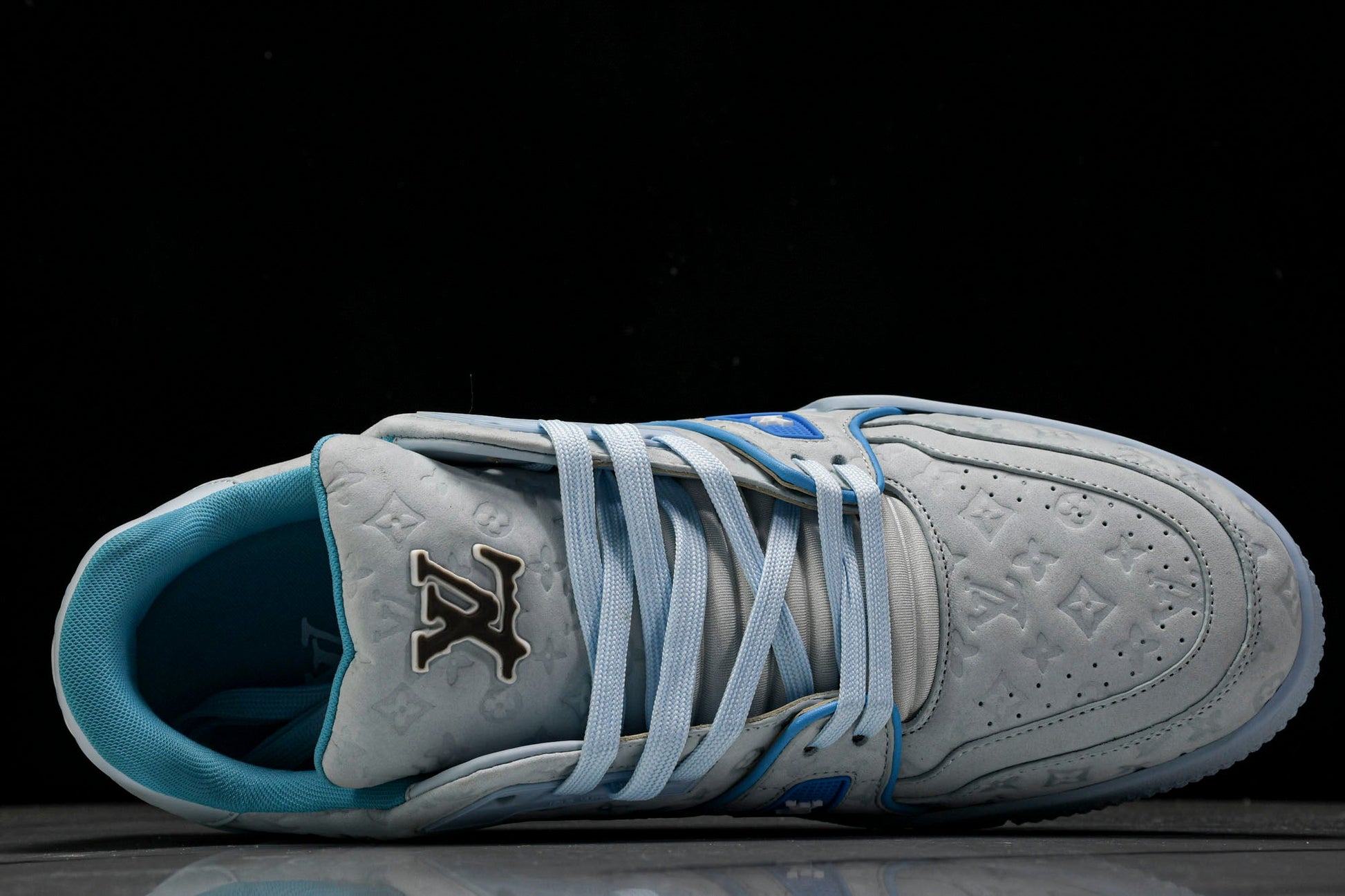 The Louis Vuittоп Trainer by Tyler, The Creator 'Blue' is already one of the hottest collabs of the year, epitomizing a bold blend of modern design and luxury craftsmanship. This striking edition captivates with an all-blue hue, showcasing the vibrant aesthetics of Tyler, The Creator's 𝓛𝓥 collection. Crafted from nubuck calf leather, the sneaker features Tyler’s playful reinterpretation of the m0nogram pattern, with his revised 𝓛𝓥 signature prominently displayed on the side. This design not only reflects a distinctive style but also the seamless fusion of contemporary flair with traditional luxury.