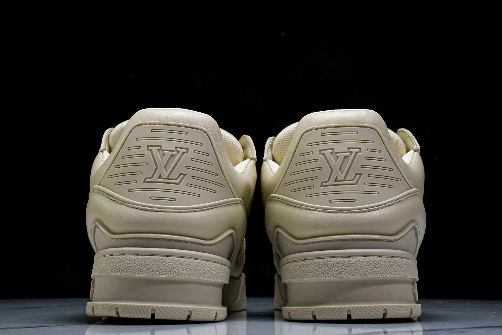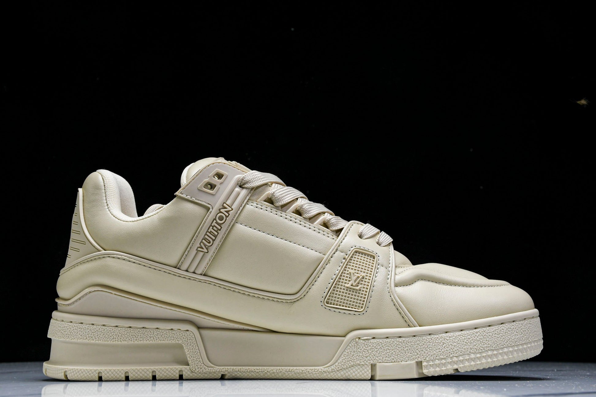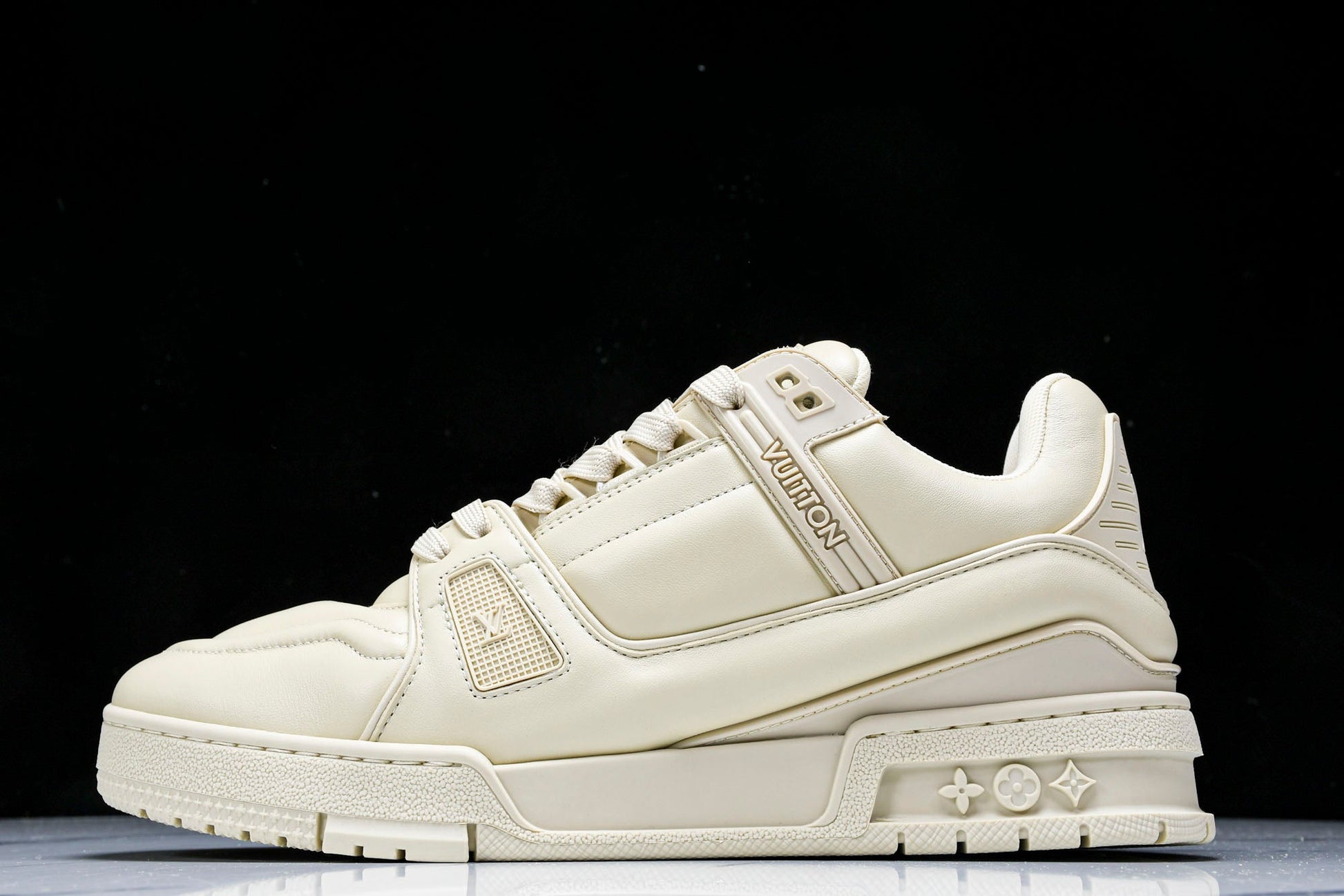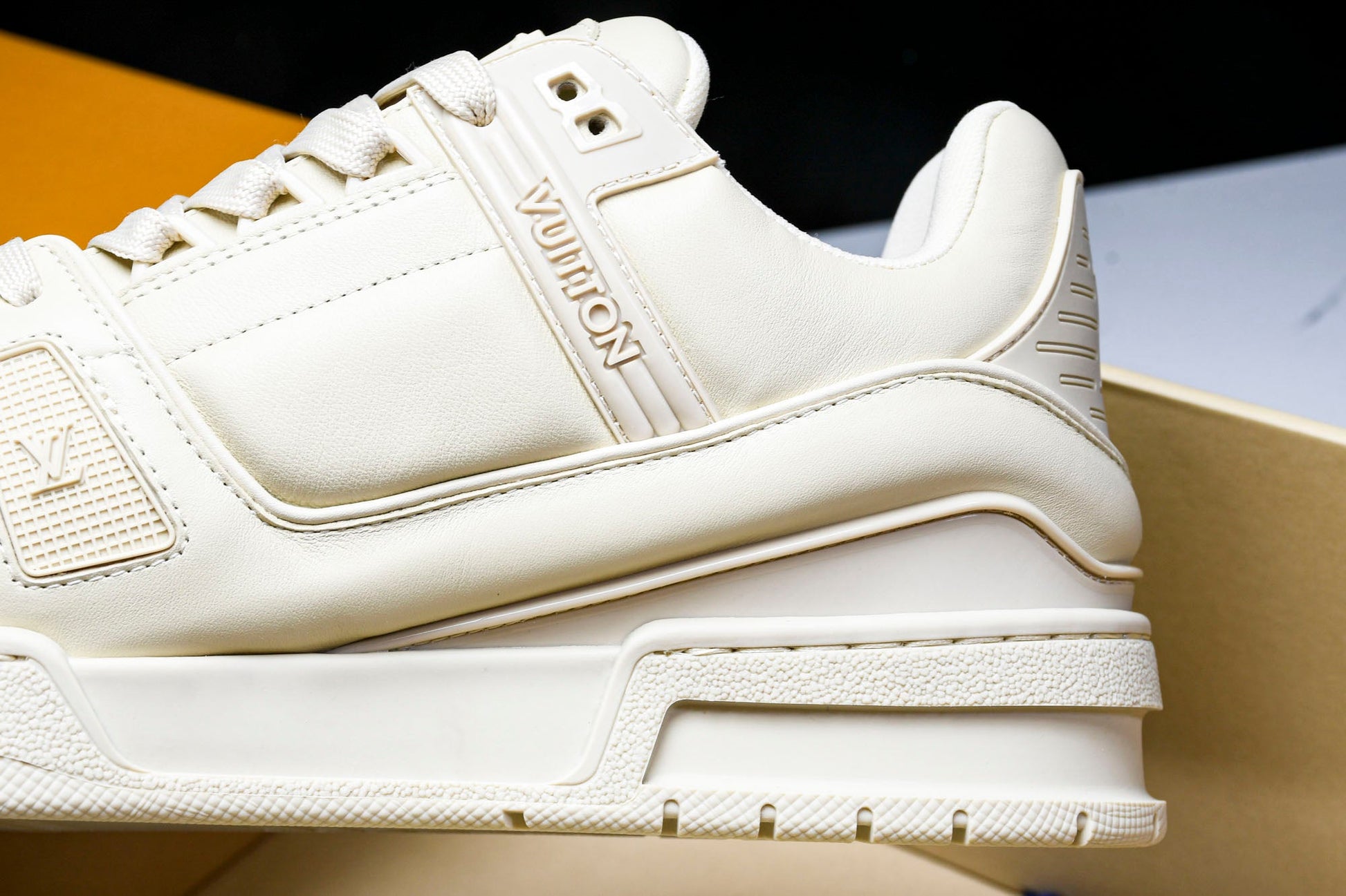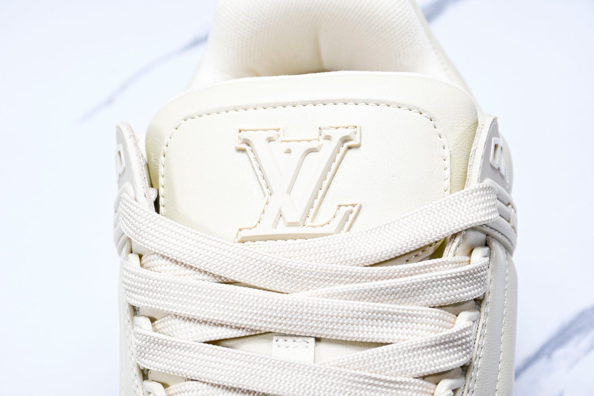 Pharrell Williams' new interpretation of the Louis Vuittоп Trainer brings a fresh, innovative perspective to this iconic sneaker, blending classic elements with his unique design approach. This edition of the 𝓛𝓥 Trainer sneaker features soft calf leather with rubber 𝓛𝓥 Initials and signatures, offering a striking monochromatic appearance. Designed with a padded, chunky aesthetic, the sneaker draws inspiration from vintage basketball footwear, originally crafted by Virgil Abloh. The rubber outsole, decorated with Monogram Flowers, matches the upper for a cohesive look.