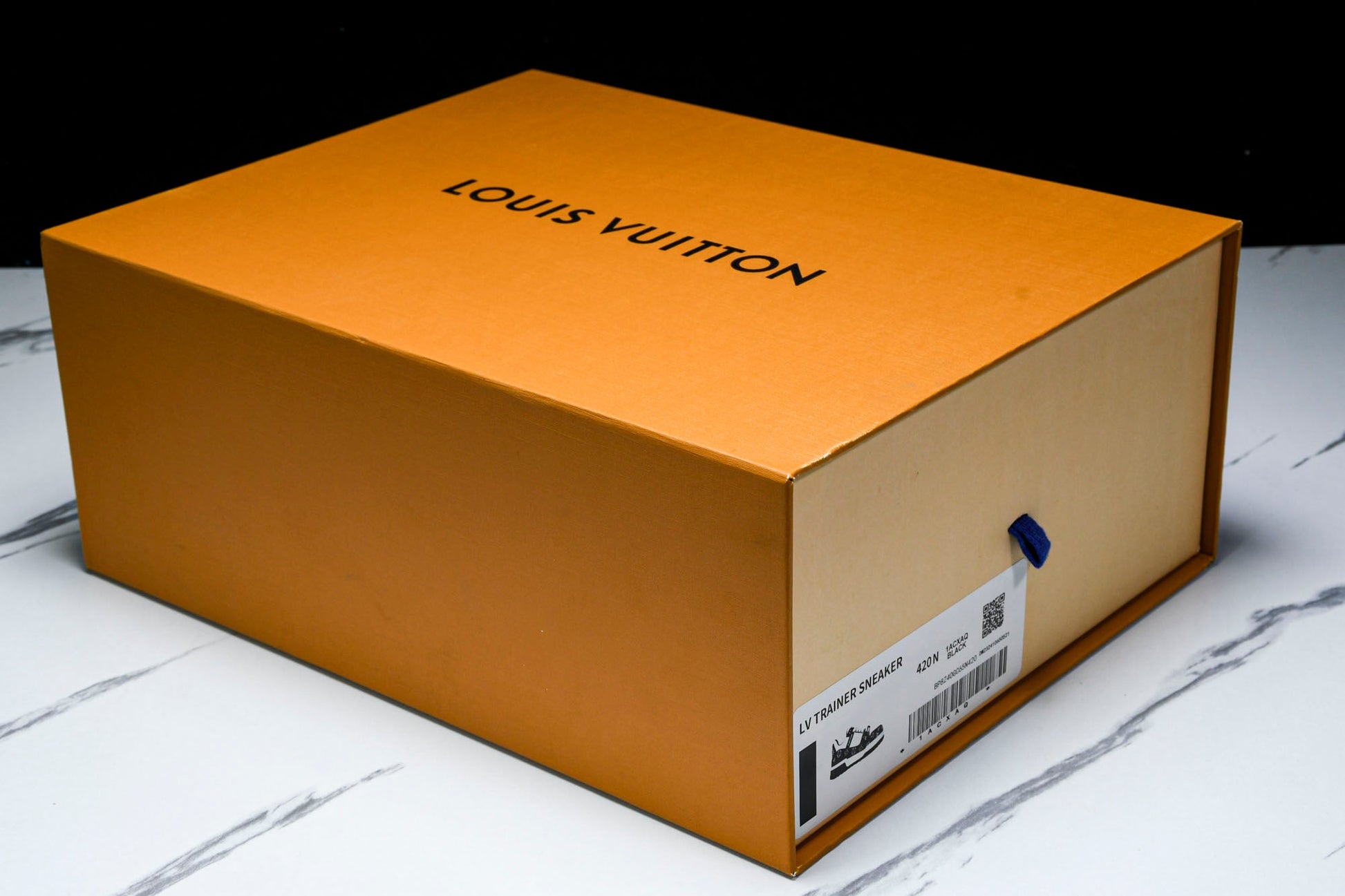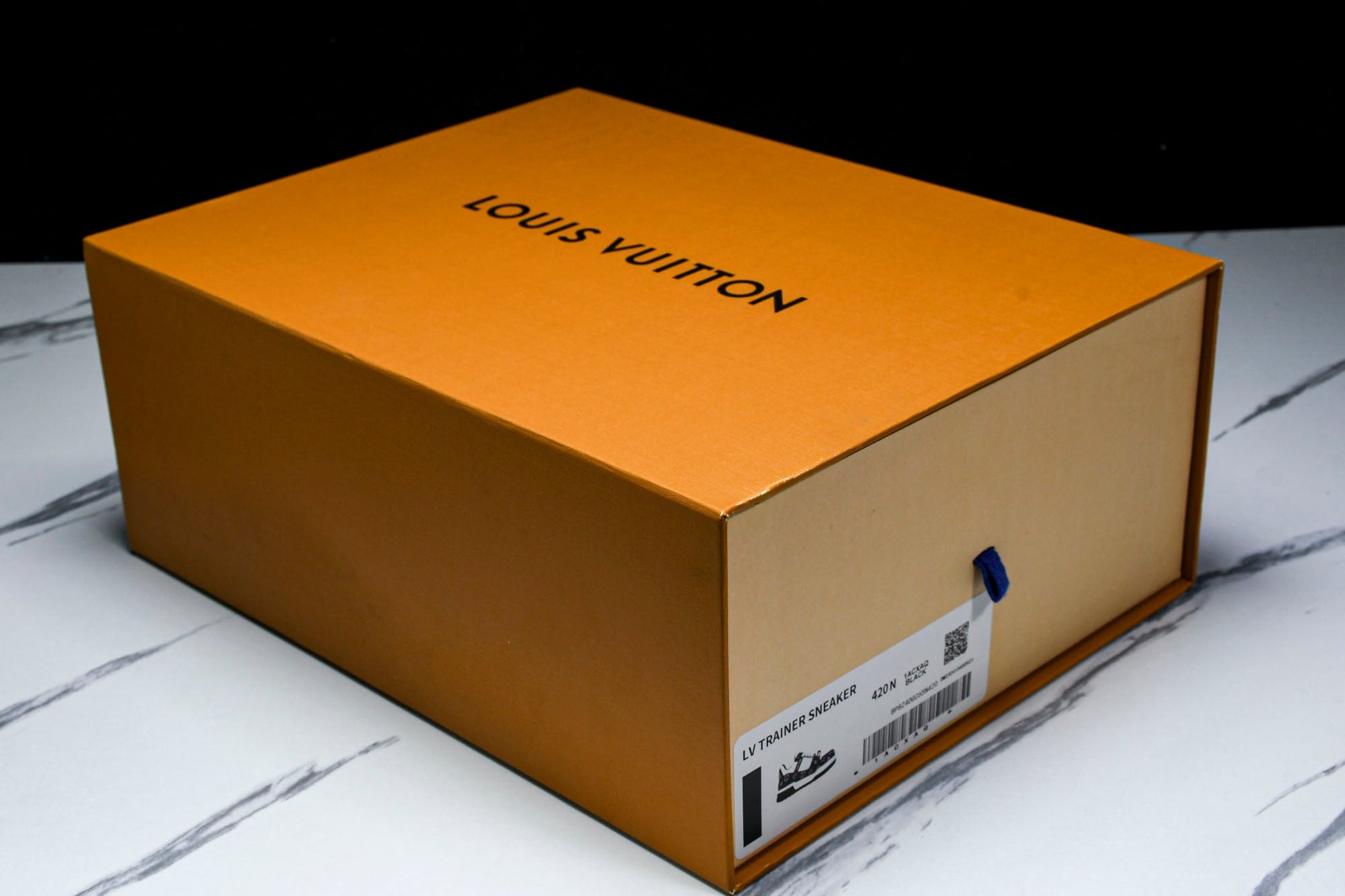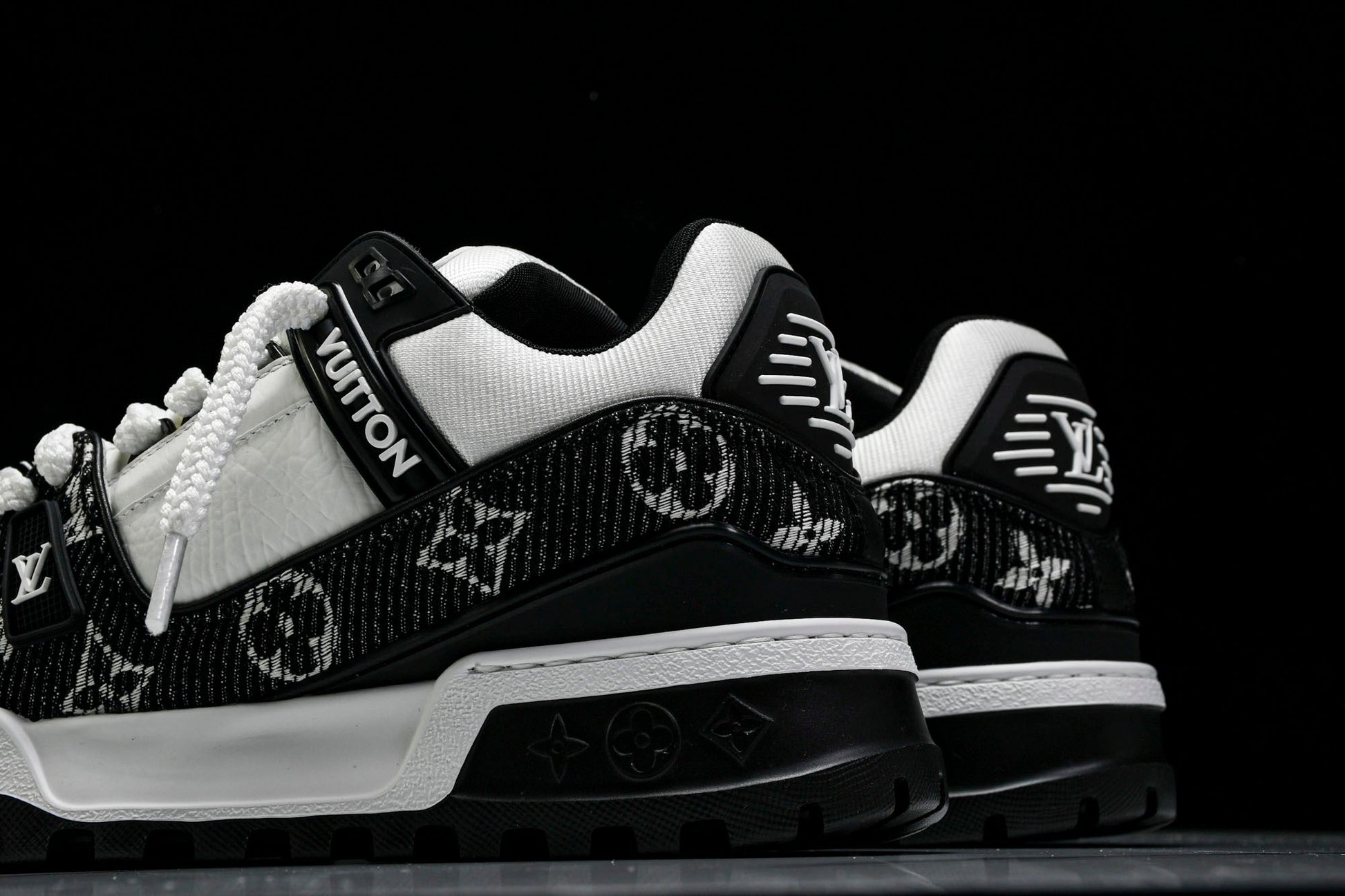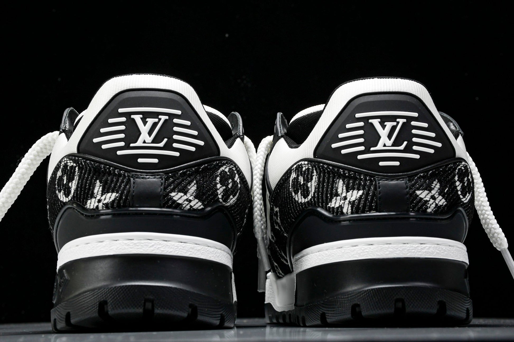 The 𝓛𝓥 Trainer Maxi Sneaker, crafted from soft calf leather, reimagines Virgil Abloh's iconic 𝓛𝓥 Trainer with an oversized fit and a modified outsole featuring pronounced tread. Inspired by vintage basketball sneakers, it includes multiple House signatures, such as rubber 𝓛𝓥 Initials on the upper and M0nogram Flowers on the outsole. Debuted at 𝓛𝓥's Spring-Summer 2023 men's show, this model also boasts thick textile laces adorned with colorful beads showcasing playful branding.