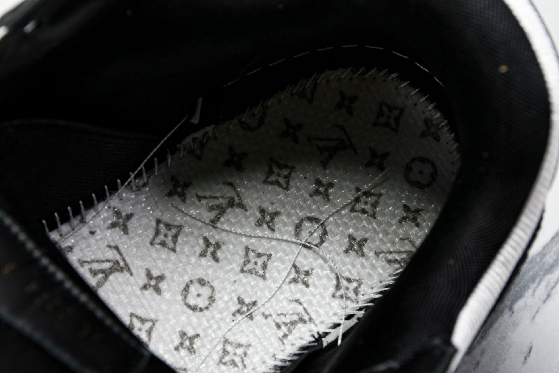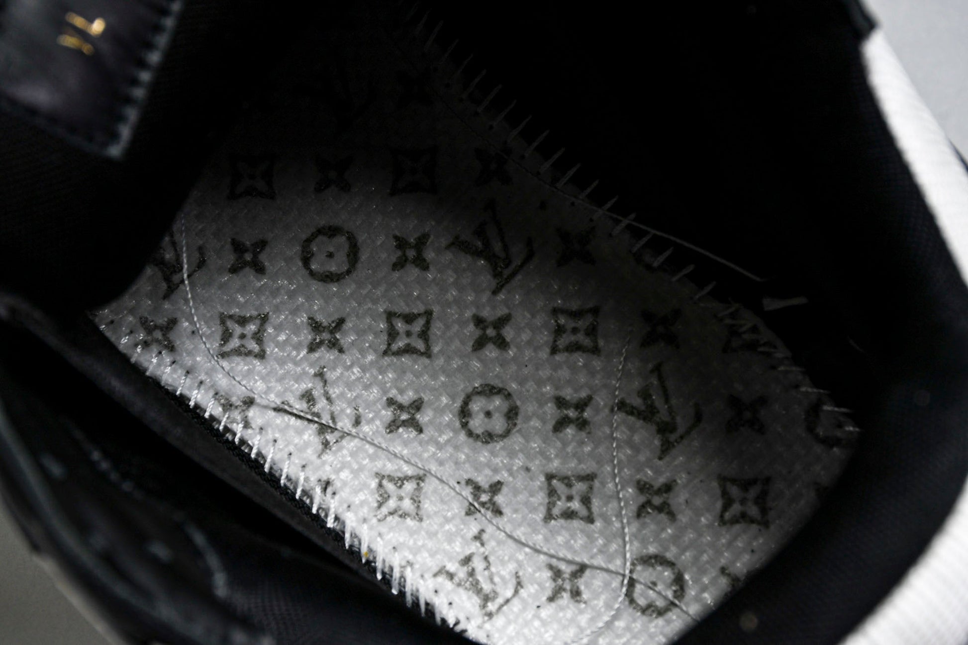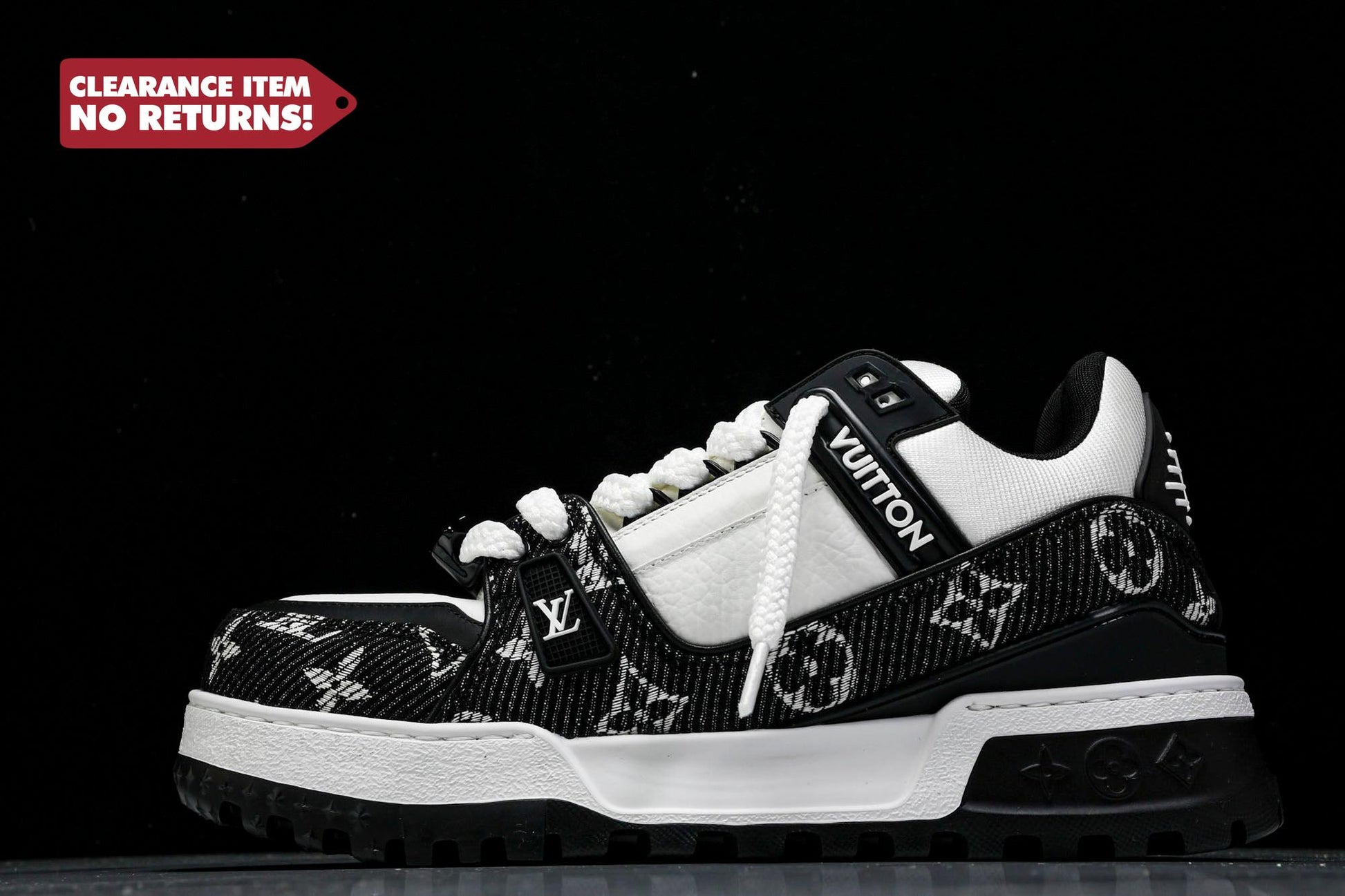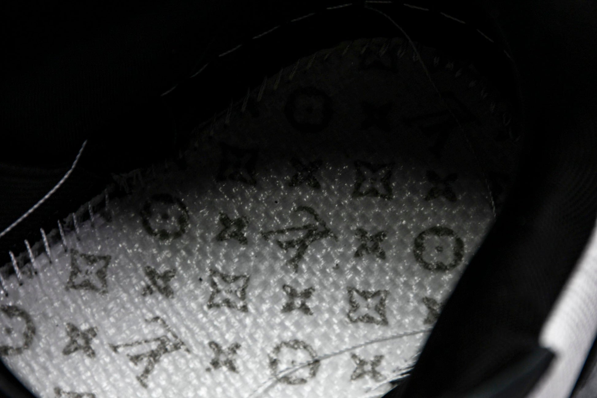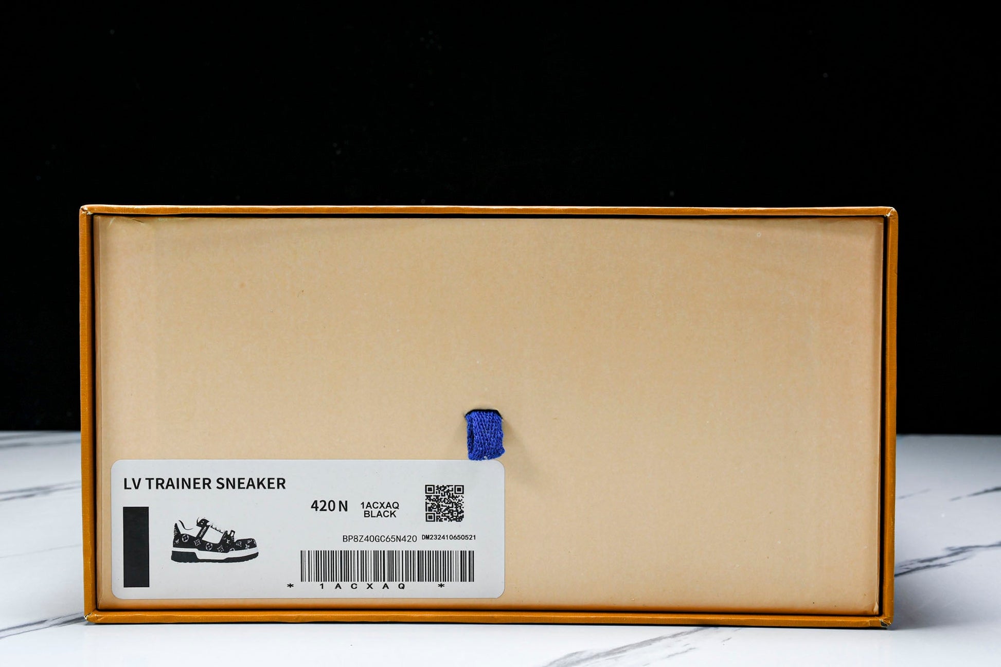 The 𝓛𝓥 Trainer Maxi Sneaker, crafted from soft calf leather, reimagines Virgil Abloh's iconic 𝓛𝓥 Trainer with an oversized fit and a modified outsole featuring pronounced tread. Inspired by vintage basketball sneakers, it includes multiple House signatures, such as rubber 𝓛𝓥 Initials on the upper and M0nogram Flowers on the outsole. Debuted at 𝓛𝓥's Spring-Summer 2023 men's show, this model also boasts thick textile laces adorned with colorful beads showcasing playful branding.