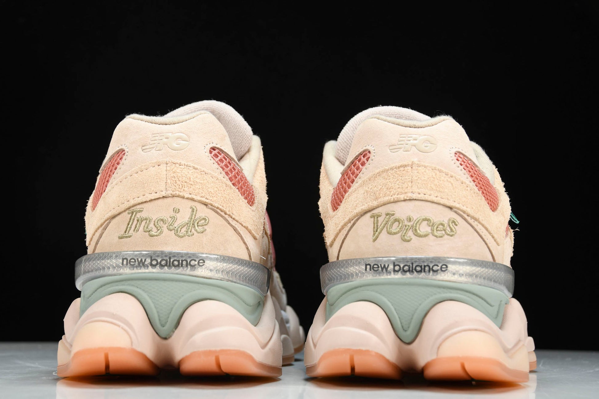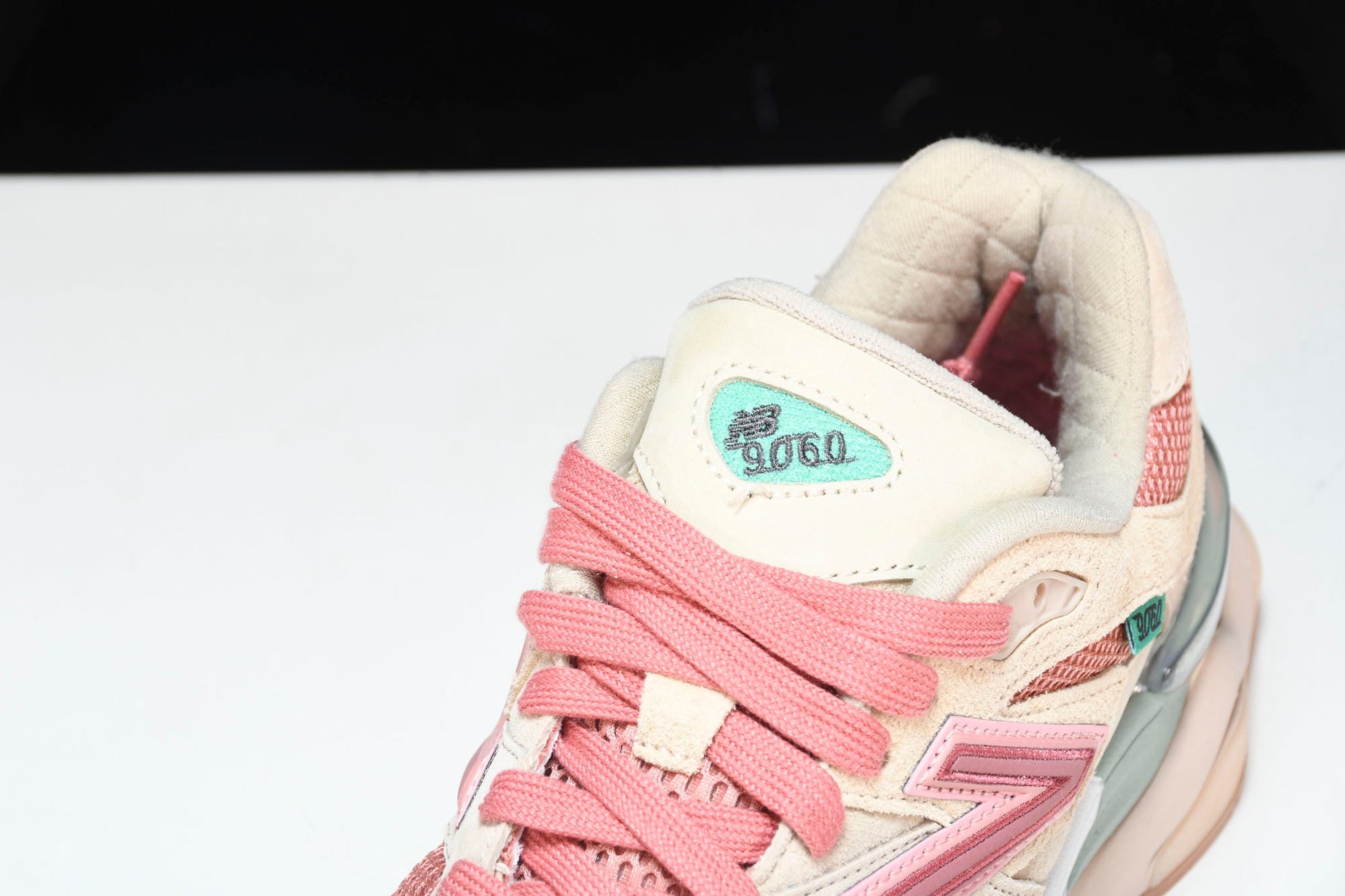 As a part of the iconic ongoing collaboration between NB and Joe Freshgoods, the NB 9060 x Joe Freshgoods Inside Voices 'Penny Cookie Pink' emerges with a striking design. The sneaker boasts a pink mesh construction, complemented by light brown suede overlays and corresponding logos. The heel features subtle "Inside Voices" embroidery in a monotone style, adding a unique touch to the design. To complete the look, a white, green, and beige sculptural sole adds both style and substance to this distinctive collab.