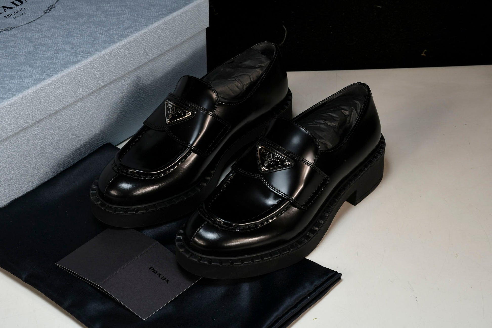 Prada Chocolate Patent Loafers 'Black' - UK 8 / US 9 / EU 42