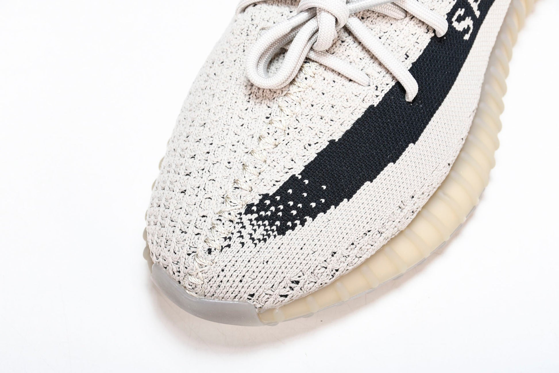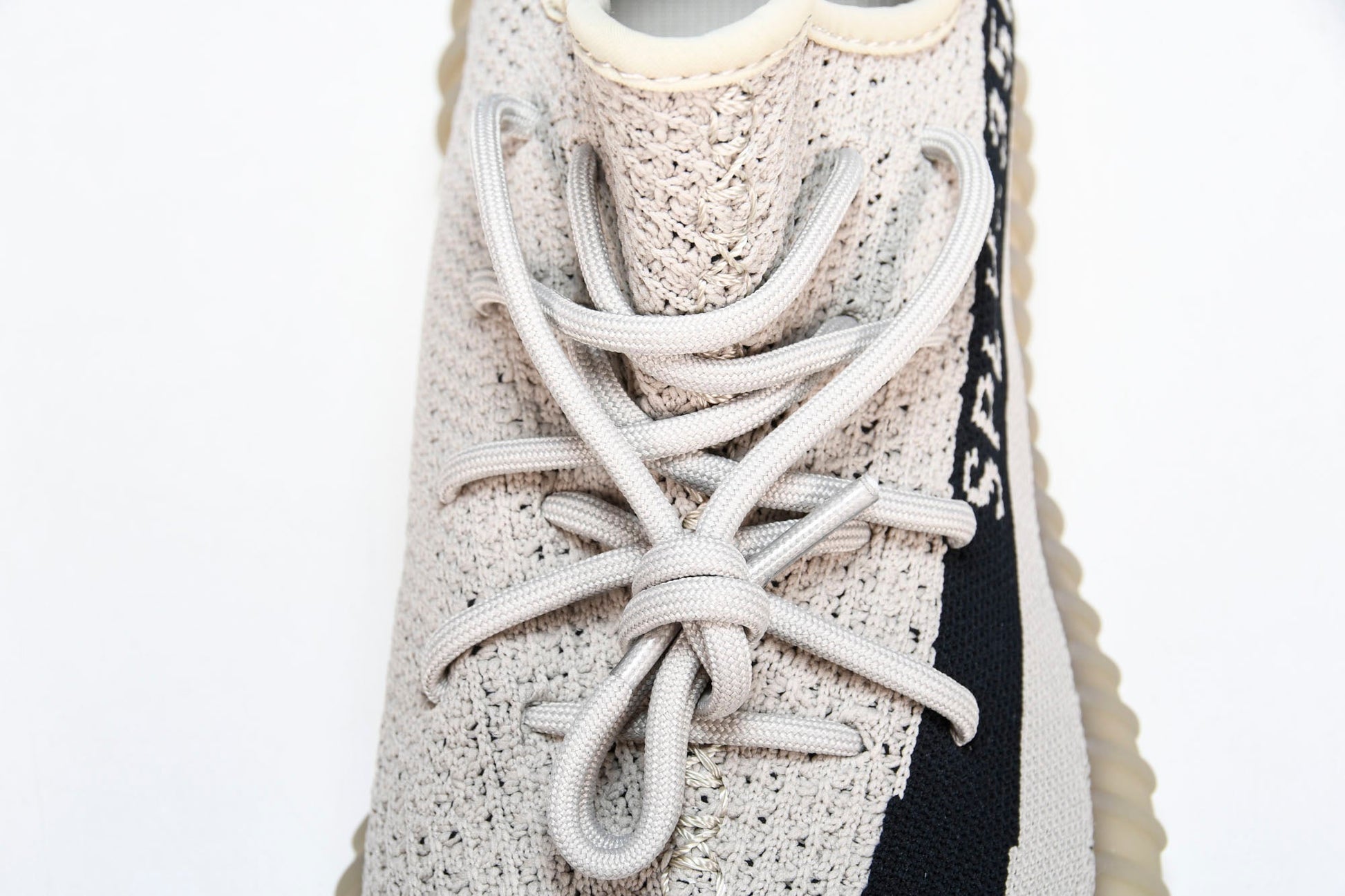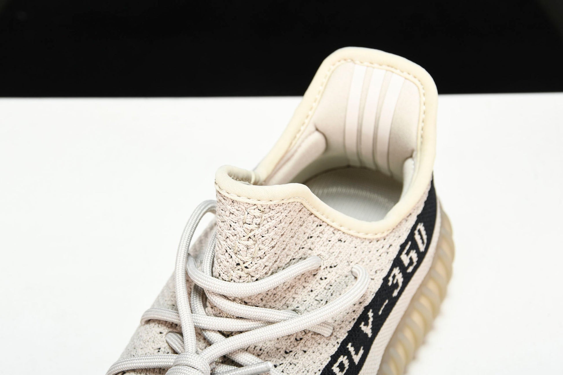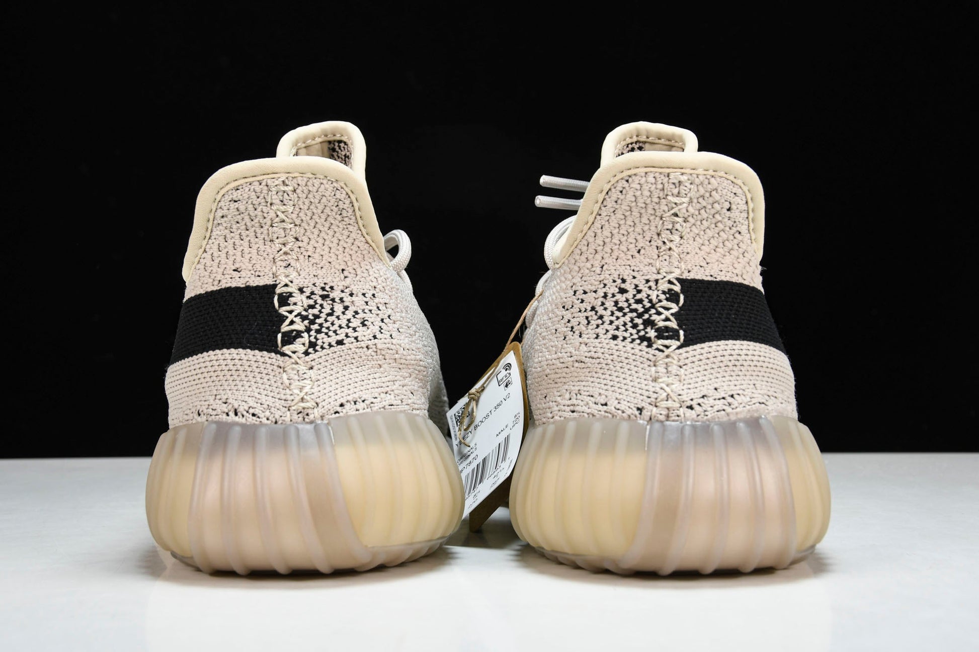 The Yeezy Boost 350 V2 ‘Slate’ complements the minimalist silhouette with a neutral two-tone color scheme. The sock-like upper utilizes tan PK construction, highlighted by distinctive center stitching down the vamp. A contrasting black streak adorns the lateral side with signature branding. The lightweight build rests on a full-length B midsole, wrapped in a semi-translucent cage for improved durability and support.
