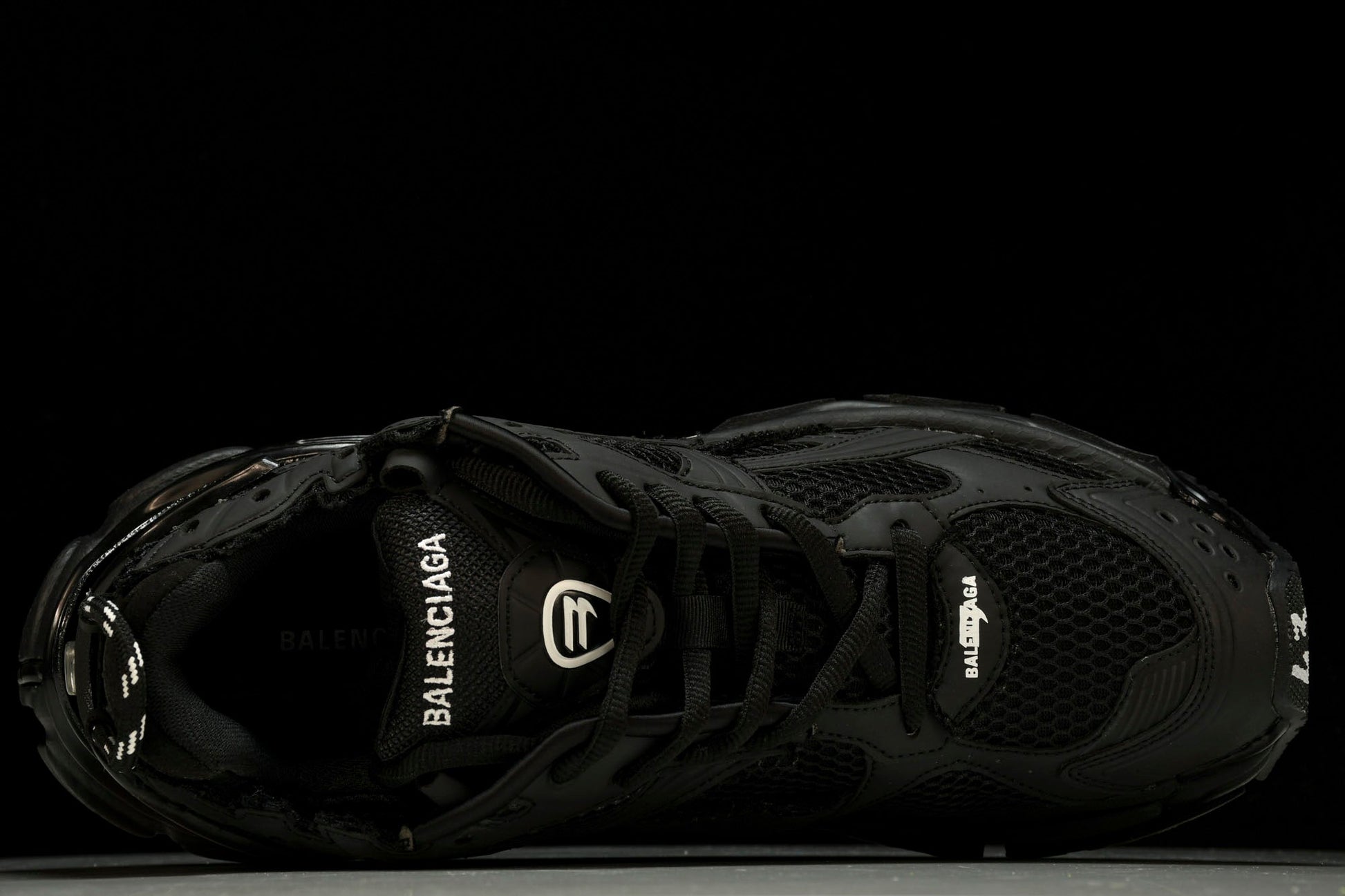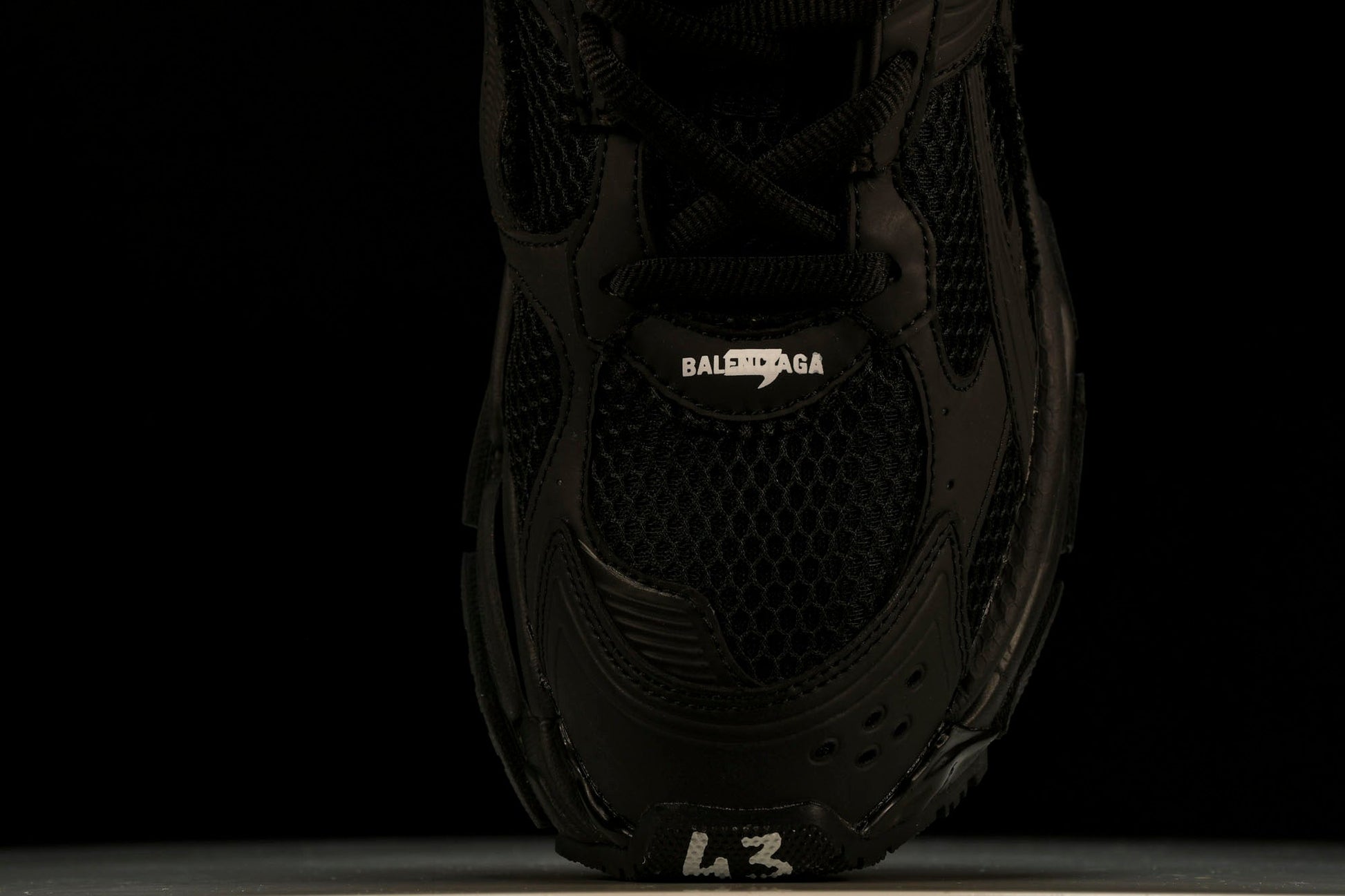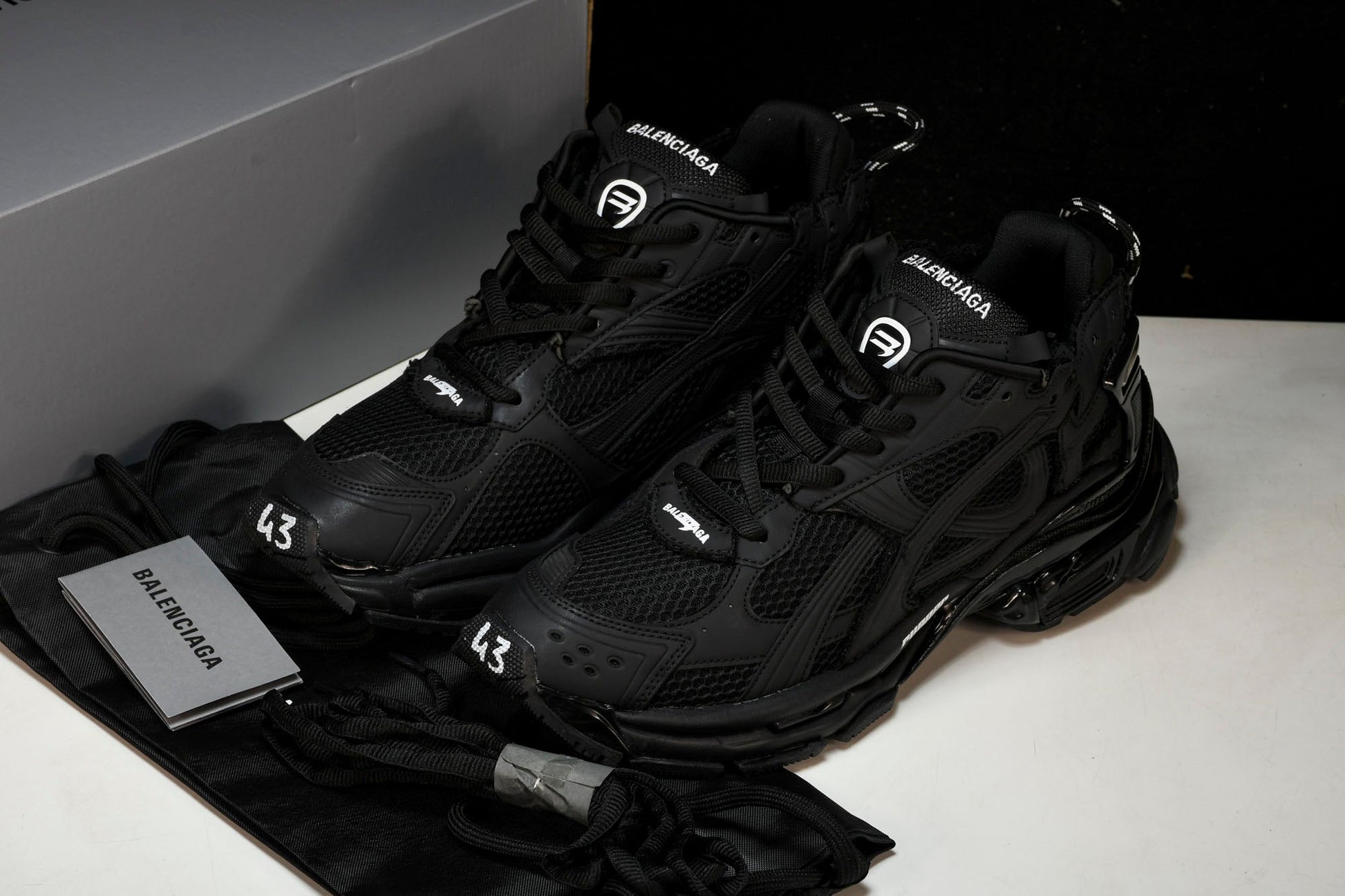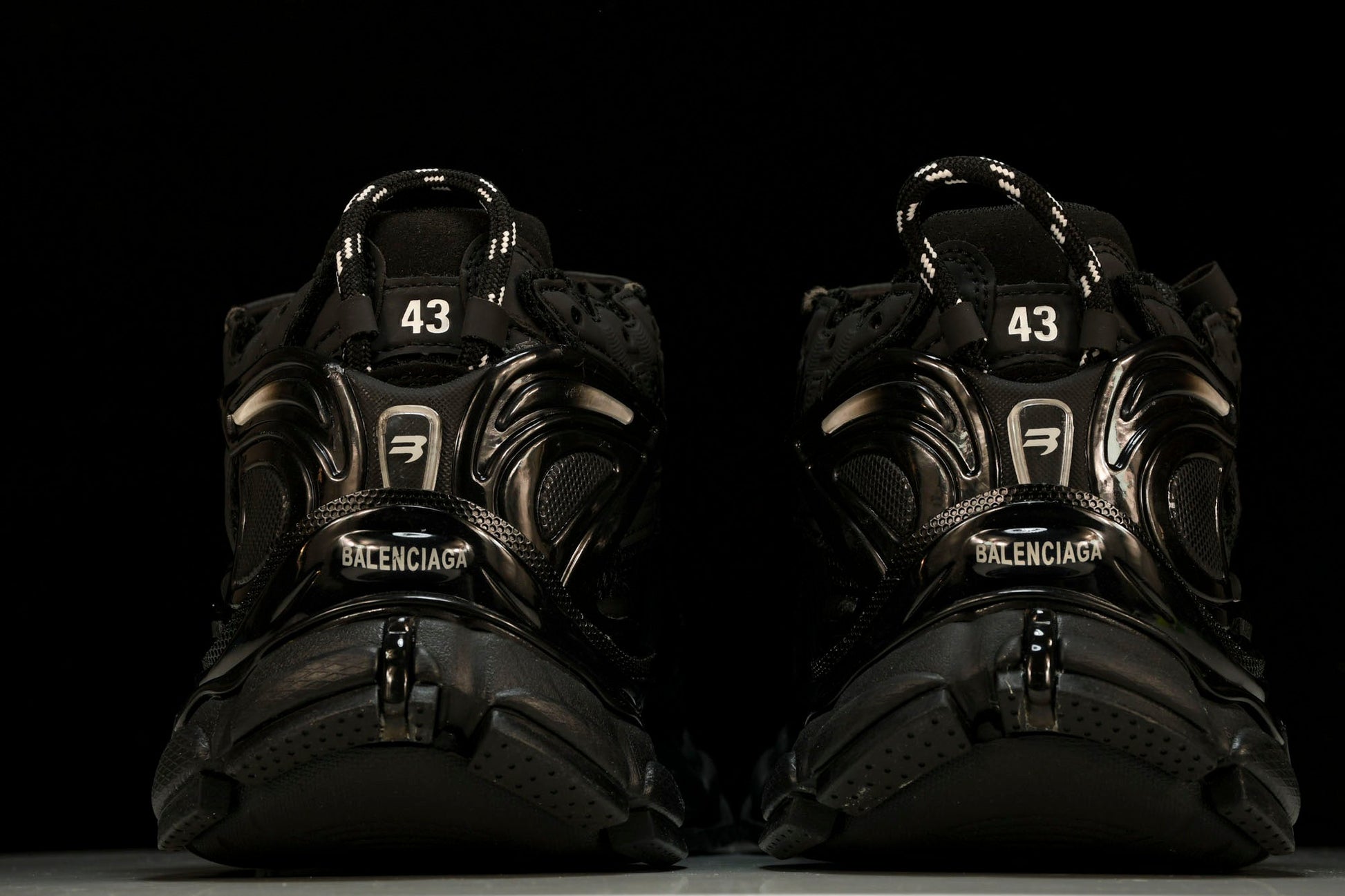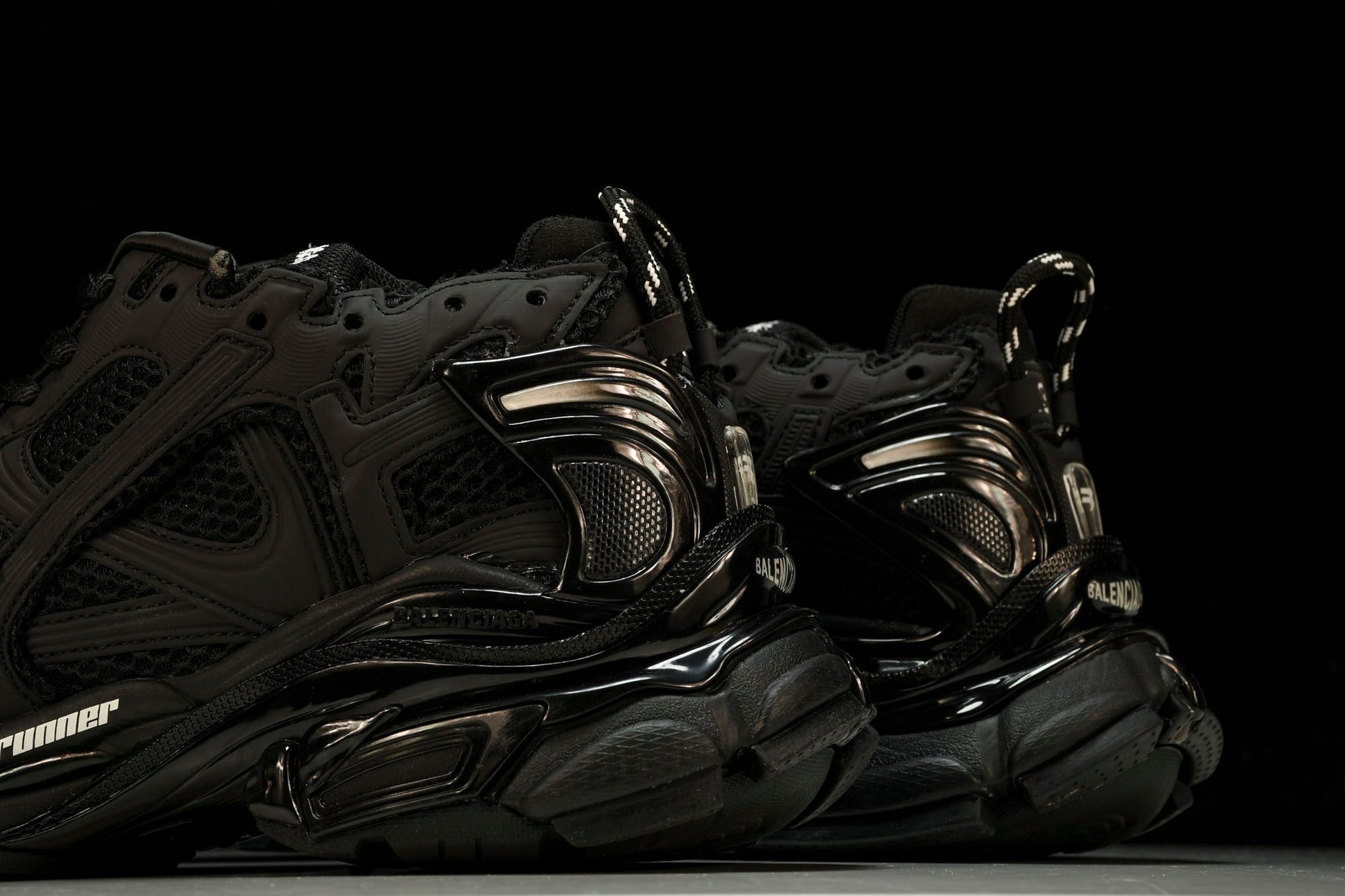 The B Runner showcases another edgy design that perfectly captures the brand's commitment to the sportswear aesthetic. This sneaker's upper incorporates mesh and nylon paneling for effective ventilation during movement, ensuring comfort and breathability. Complemented by a chunky ridged rubber sole that provides ample support, these sneakers combine style and functionality effortlessly. The sleek 'Triple Black - Matte' version, swathed in all-black, maintains the bold and sporty design that is characteristic of B's sportswear aesthetic. It's a sophisticated choice for those who value both fashion and performance in their sneakers.