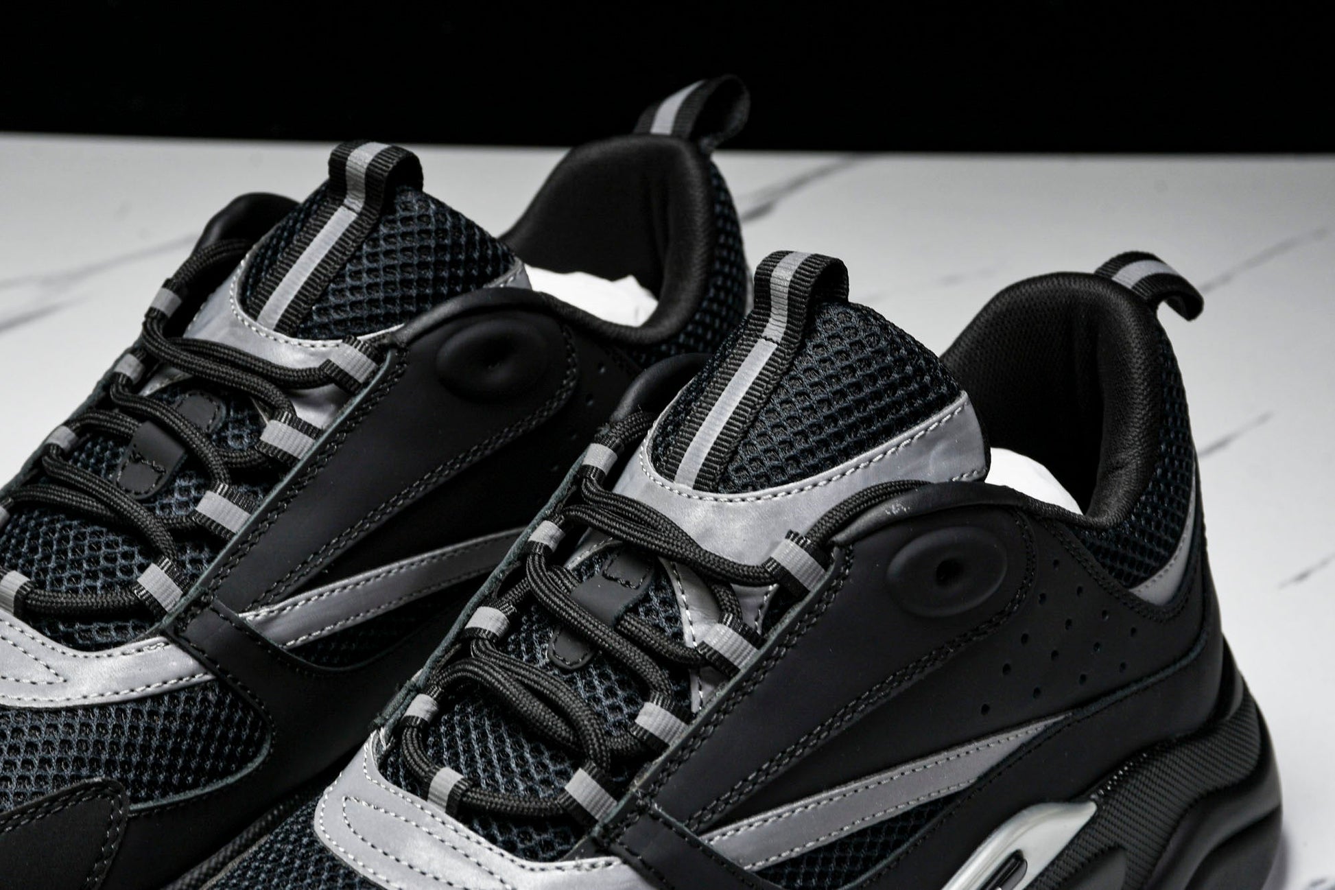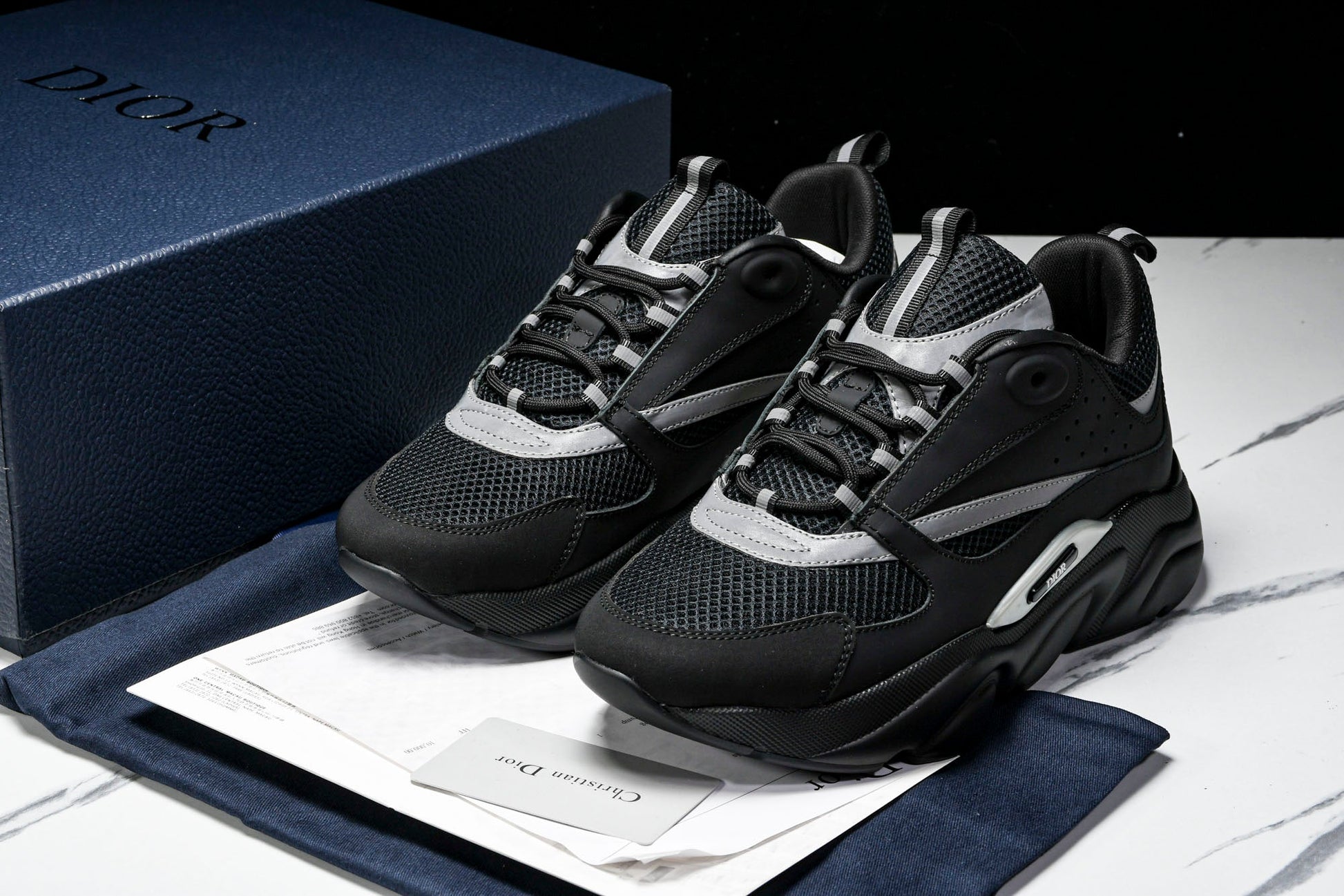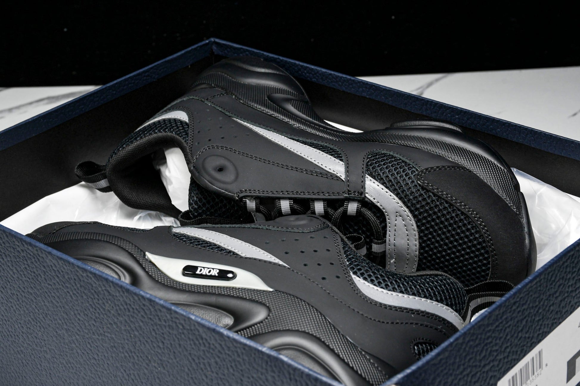 Busting onto the scene in 2018, the D1or B22 quickly became an influential designer sneaker, setting trends in luxury footwear. Designed by Thibo Denis, its bold, chunky silhouette is crafted from a mix of mesh and premium calfskin leather, offering a sleek yet athletic look. Reflective details add a touch of modern flair, enhancing the sneaker's eye-catching design. The B22 expertly combines retro running aesthetics with D1or’s renowned craftsmanship, featuring a sculpted midsole with elegant branding, and calfskin pull tabs for easy on and off.