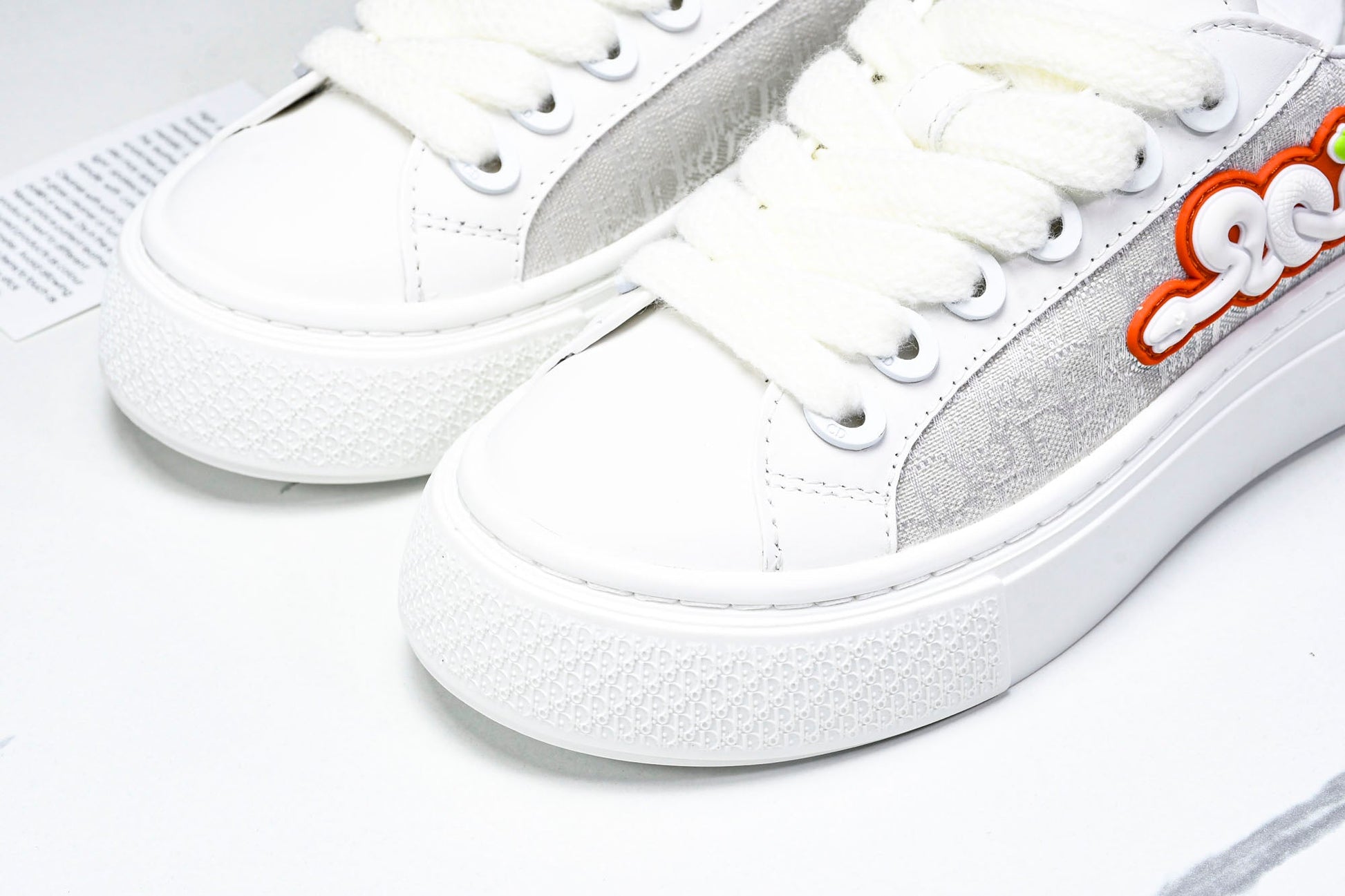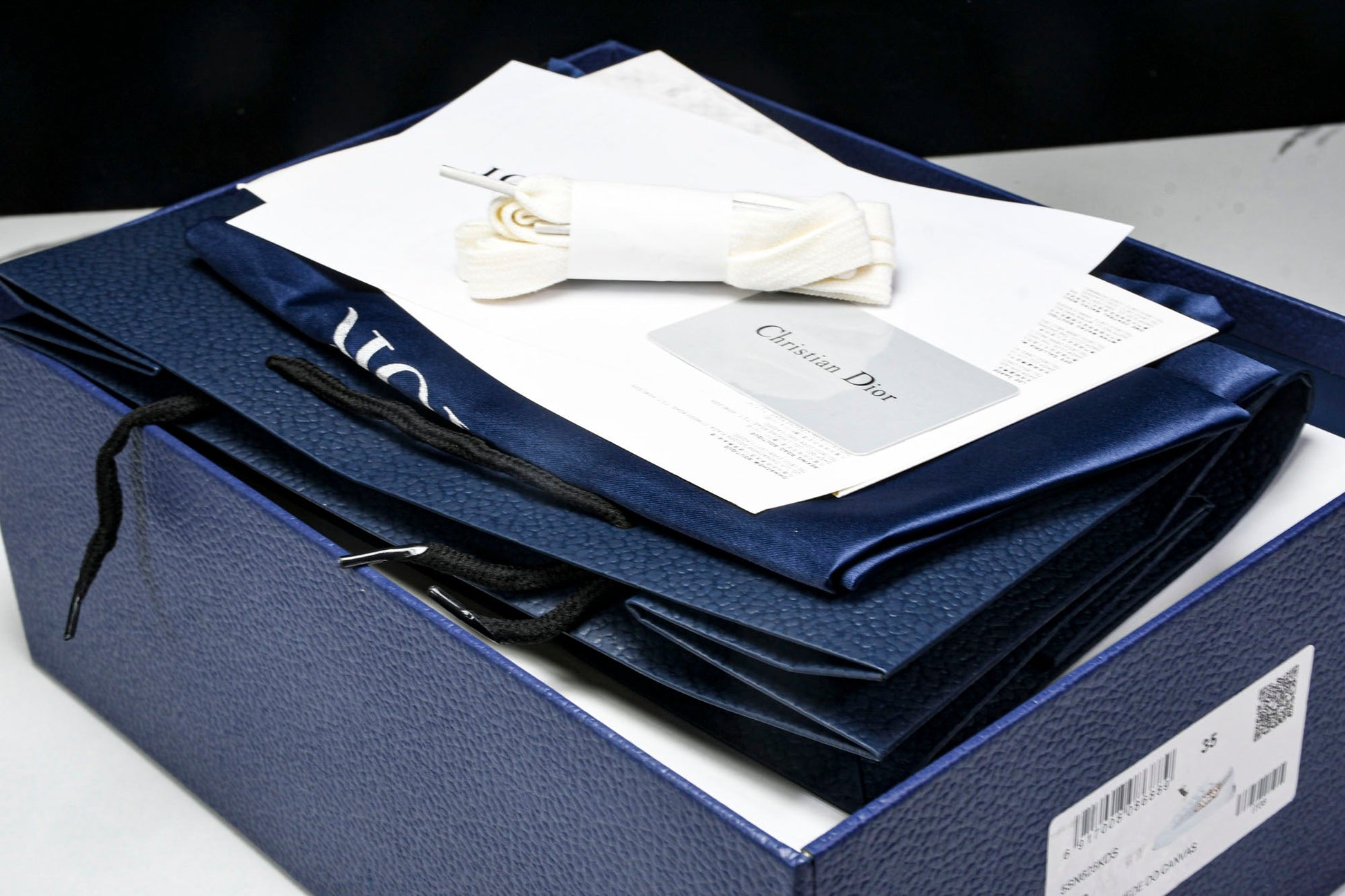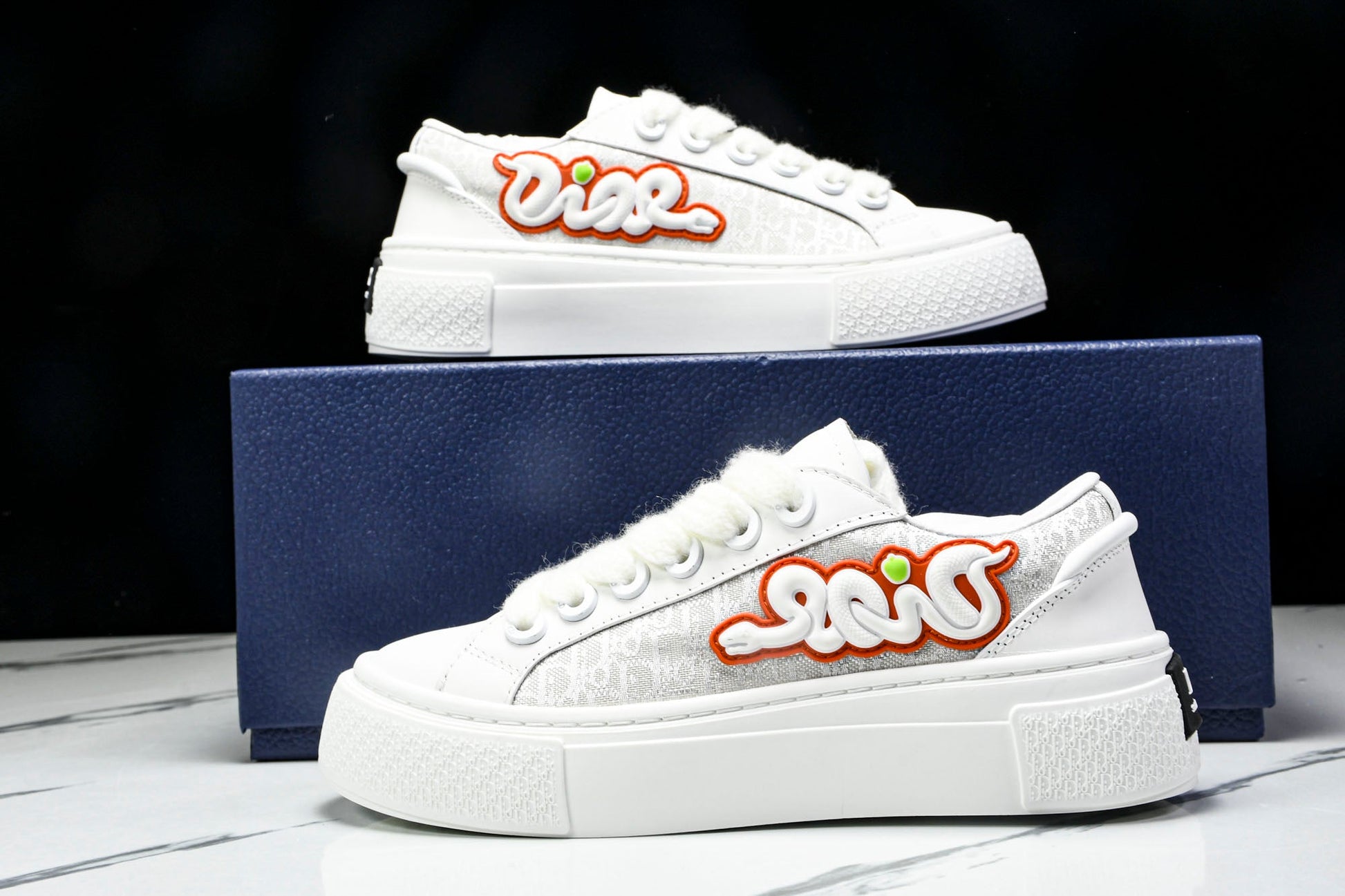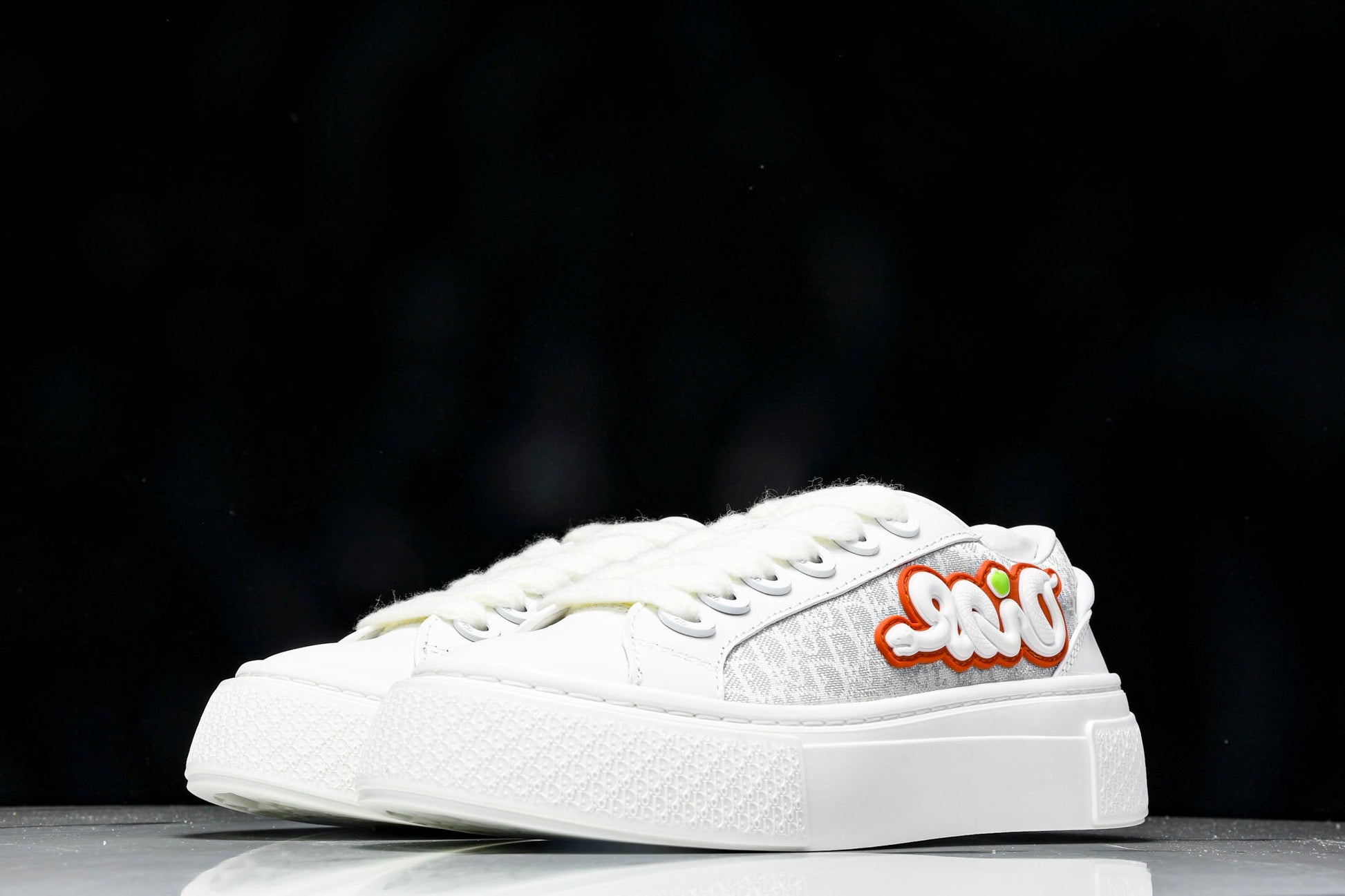 Part of the exclusive D1OR x KAWS capsule, the B33 Spin sneaker reimagines the classic tennis shoe with a bold, modern silhouette. Crafted from a mix of calfskin and canvas panels, it features the iconic D1or Oblique motif on the sides, complemented by a three-tone D1OR AND KAWS rubber patch that playfully reinterprets the House’s signature. The padded collar, mohair laces, and technical mesh lining enhance comfort and craftsmanship, while the 30 Avenue Montaigne signature adds a refined touch to the sculpted rubber sole. Designed for versatility, this sneaker effortlessly elevates any casual look.
