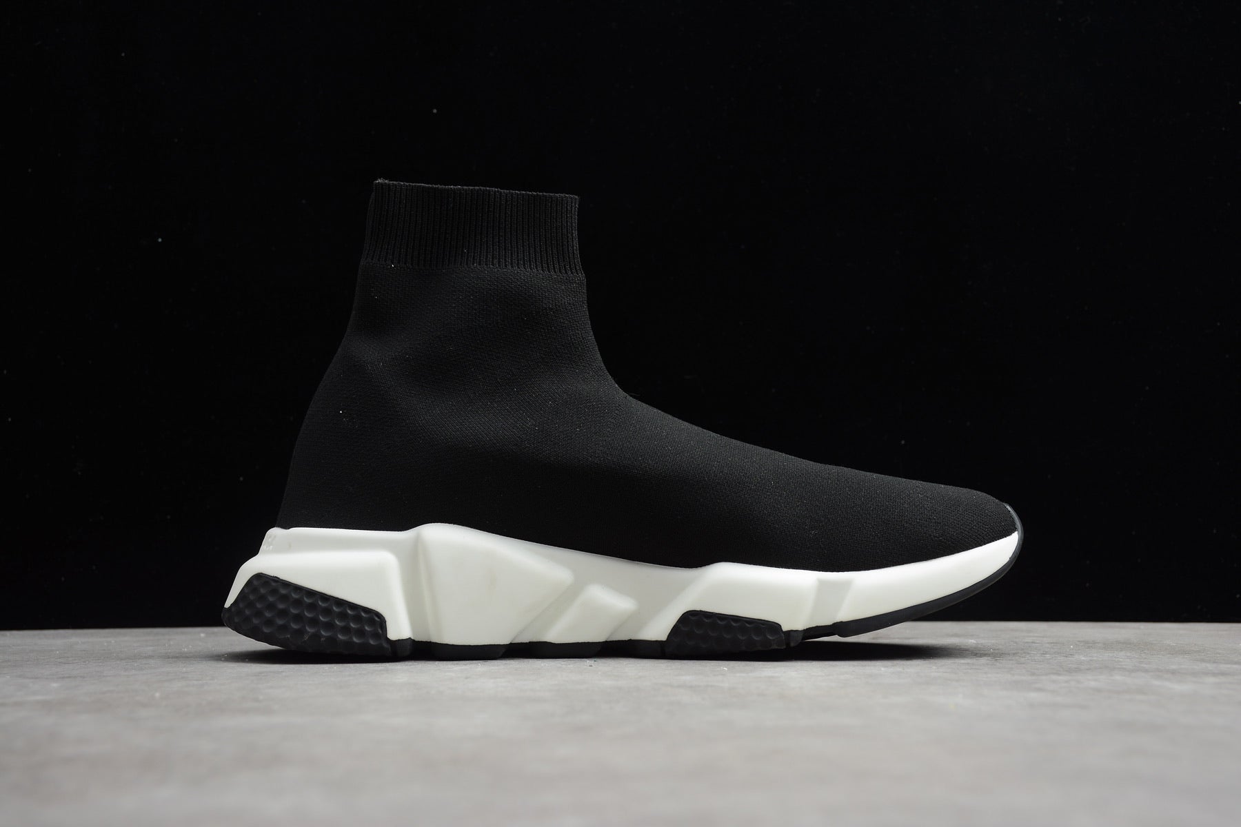In a need for speed? You're in luck. These sneakers are super lightweight with a knitted sock upper and an ergonomic shock absorber clear sole. Be prepared to fly out in all-out comfort. Featuring a sport sock style, an almond toe, a printed logo, a platform sole and ergonomic clear sole.