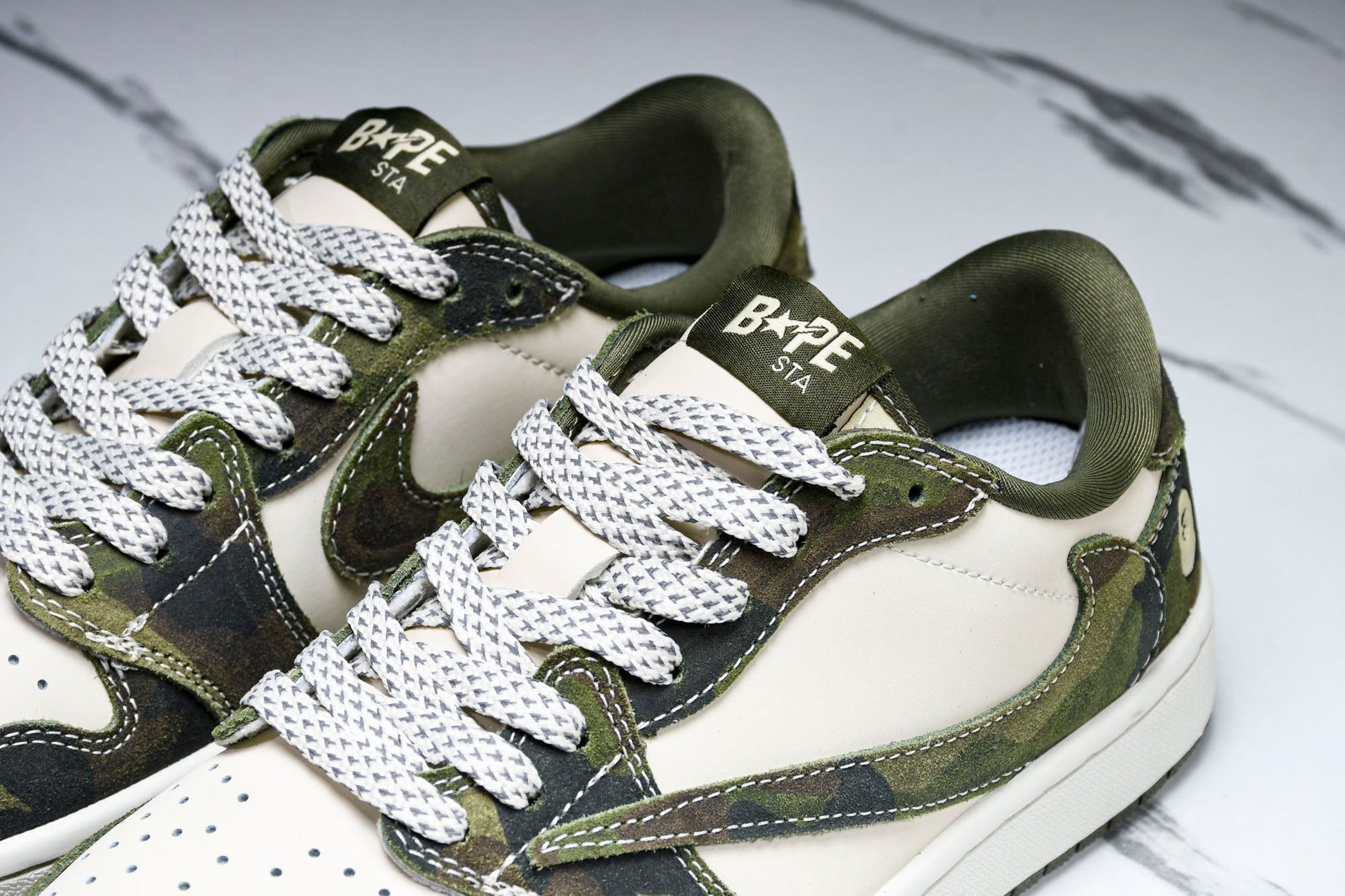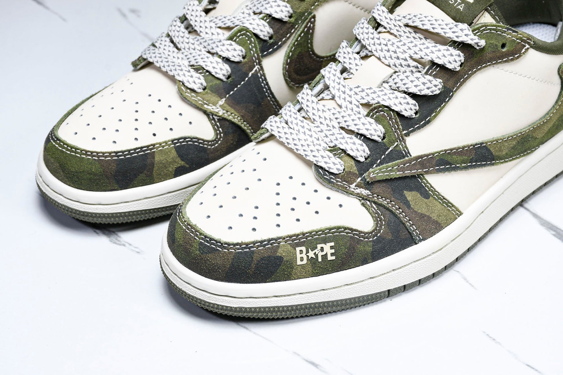 Drip Locker is here to make your impossible fantasy collaborations a reality - bringing together iconic brands in a series of custom creations that sneakerheads could only dream of. These unreleased Travis Scott AJ1 Retro Low x BAPE sneakers offer an exclusive fusion of streetwear icons, blending the Travis Scott AJ1 Low design with distinctive BAPE branding. Featuring unique premium materials and the signature reverse check, these sneakers showcase a one-of-a-kind look that elevates any collection