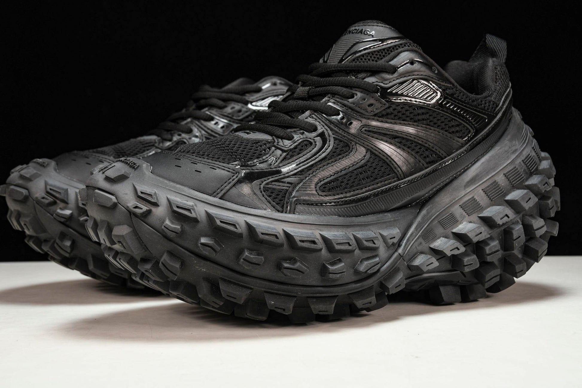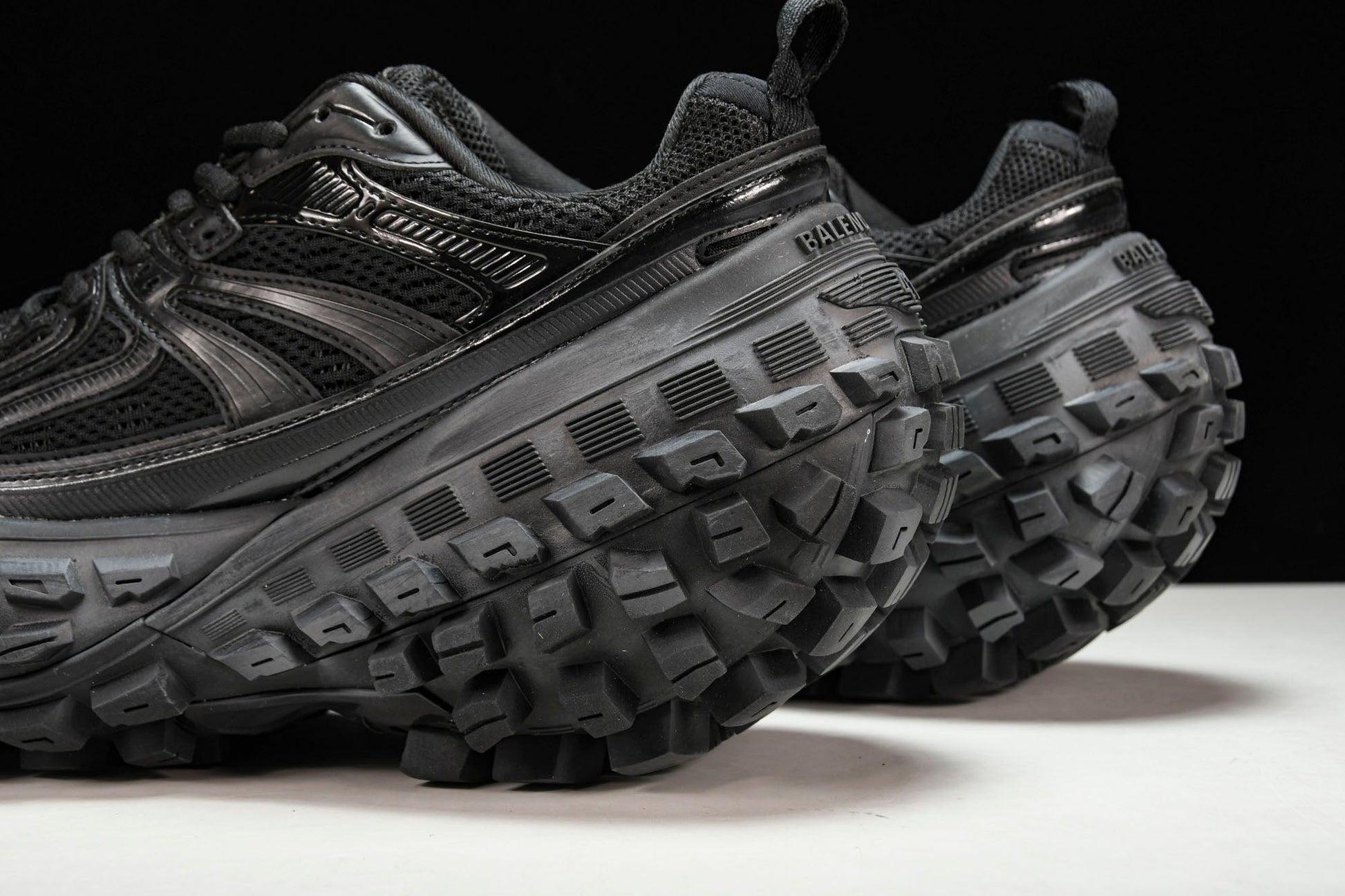 B's iconic 'Defender' sneakers, now reintroduced through the SS23 Red Carpet Collection as the 'Bouncer', take sporty mesh uppers to the next level with a bold twist. The super chunky tire tread outsole, a hallmark of B's innovative design, adds a unique and dramatic element to this oversized sneaker. The 'Black' colorway maintains its distinctive and edgy style, offering a fusion of sporty aesthetics and contemporary fashion. These sneakers are more than just footwear; they are a statement of individual style and B's commitment to pushing the boundaries of fashion.