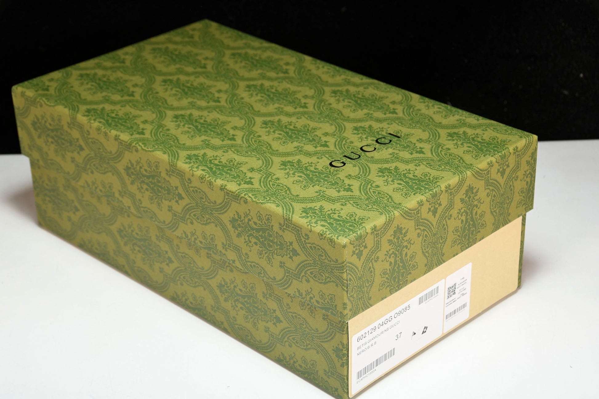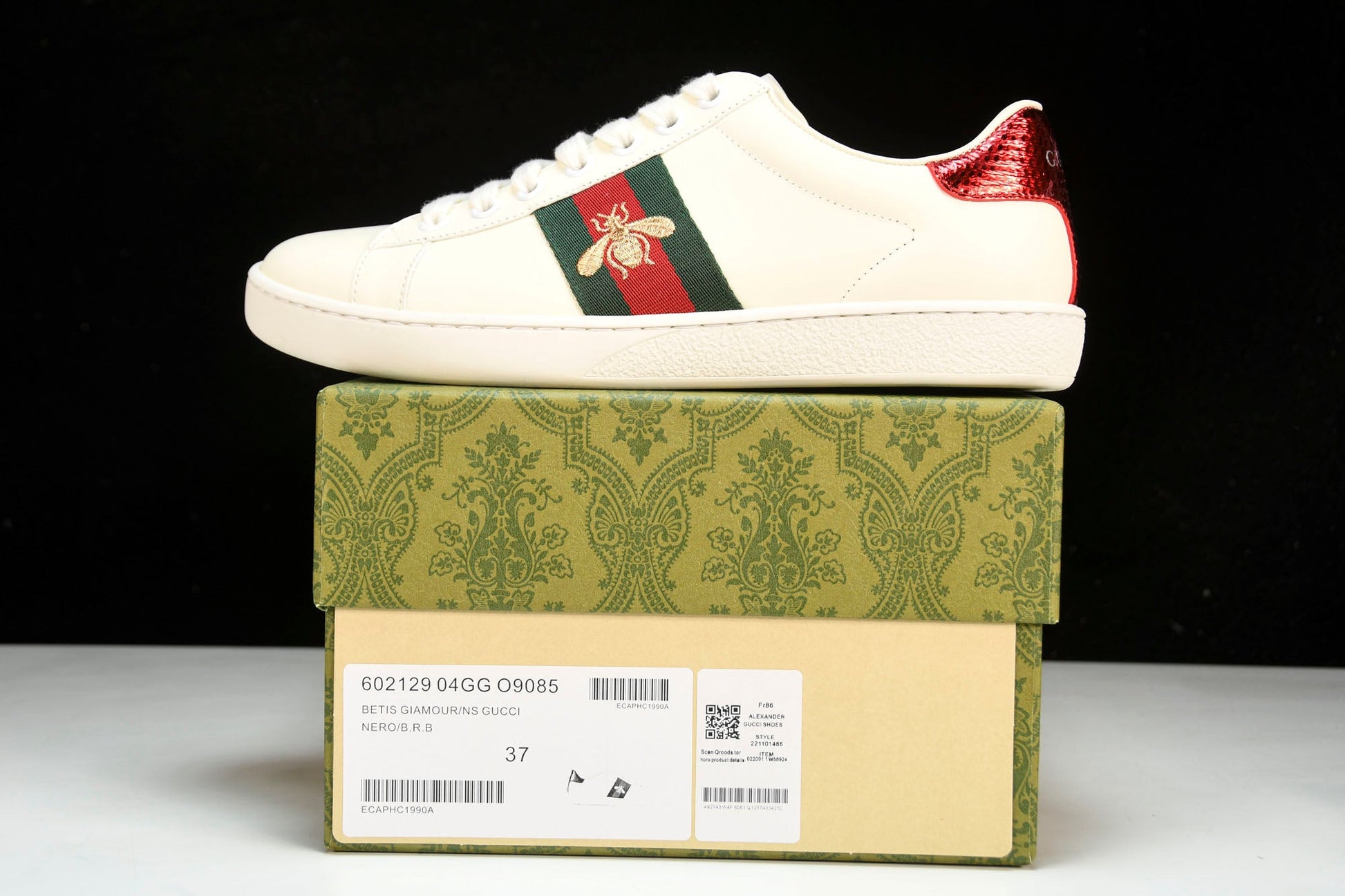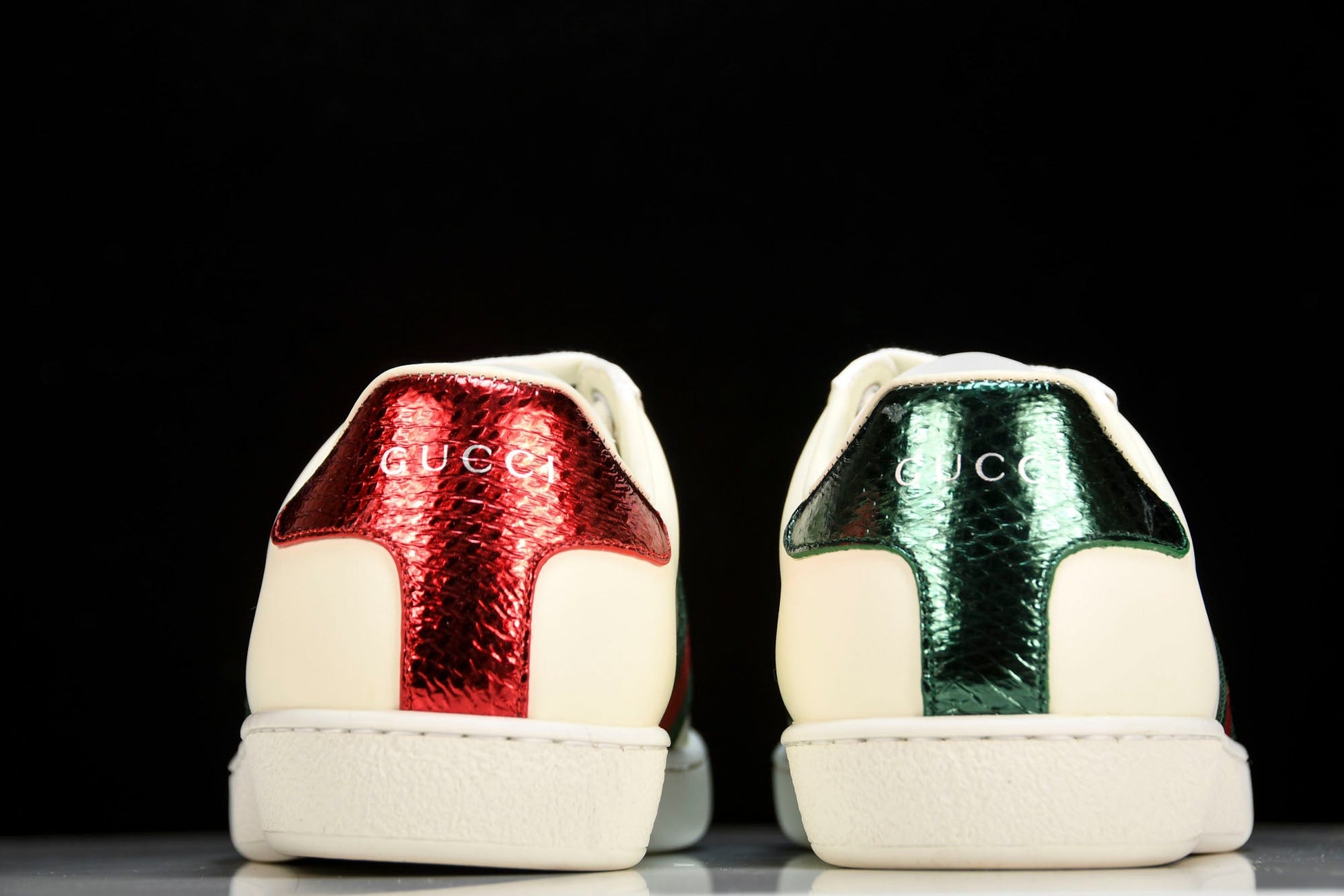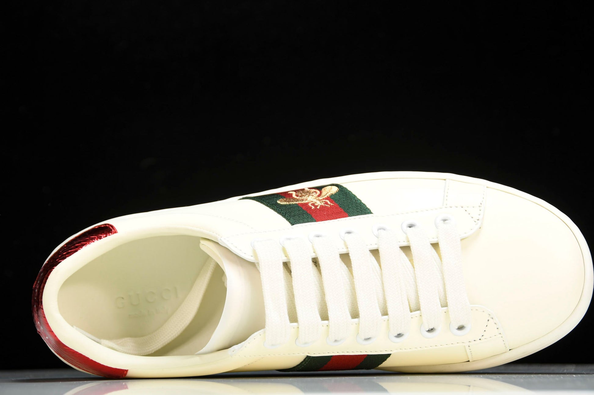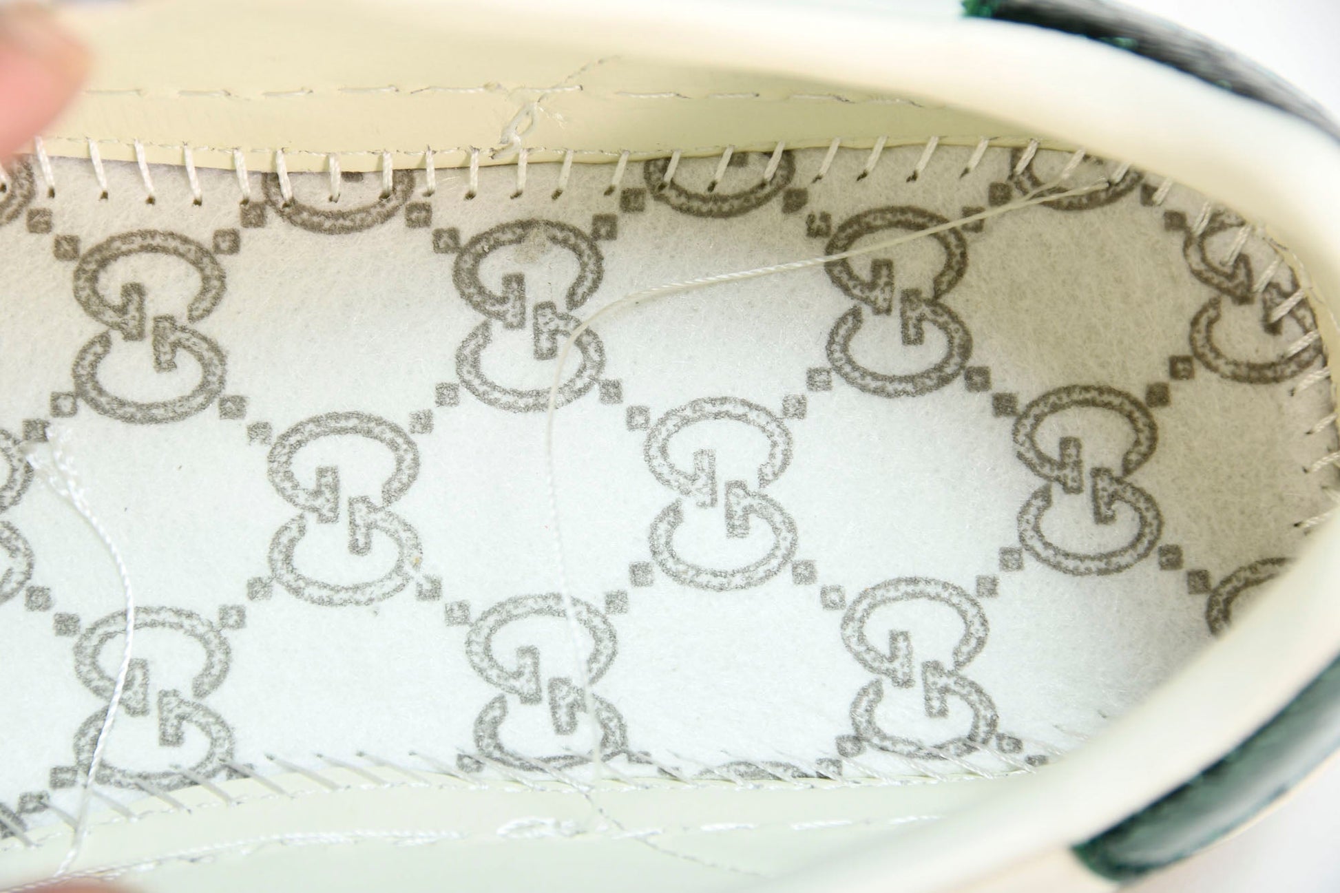 The Guссi Ace 'Bee' sneakers epitomize the perfect fusion of luxury and contemporary style. Crafted from premium materials, these iconic low-top sneakers feature the signature green and red web stripes along with an intricately embroidered bee motif, creating a distinctive and eye-catching design. The green and red theme continues with the mismatched back heels. The clean white leather base adds a timeless touch, ensuring versatility in styling. Meticulously crafted with Guссi's impeccable attention to detail, the Ace 'Bee' sneakers stand as a symbol of elegance and fashion-forward sophistication. Elevate your footwear collection with this statement piece that effortlessly blends classic Guссi aesthetics with modern flair.
