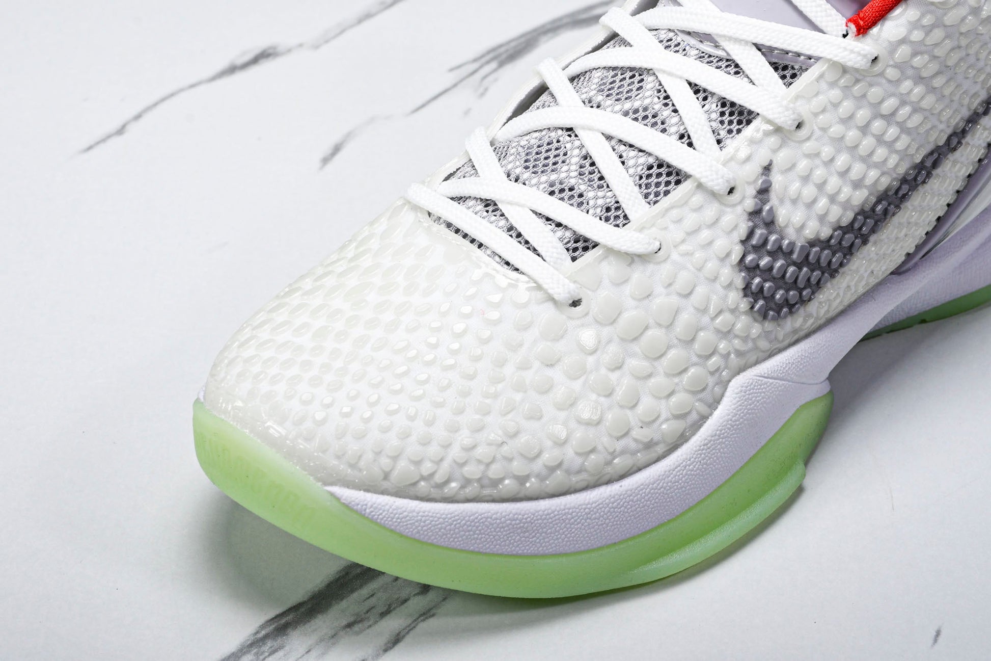 The Kobe 6, designed by Eric Avar, was a groundbreaking basketball shoe that redefined performance and style, worn by Kobe during the 2010-2011 NBA season. Inspired by soccer cleats, its innovative low-cut design revolutionized the game, offering unprecedented ankle mobility. The snakeskin textured polyurethane upper pays homage to Bryant’s ‘Black Mamba’ nickname. The Phylon-injected midsole and ZM AR units offer a comfortable and responsive performance, while the molded heel counter provides stability. With countless iconic colorways, the Kobe 6 remains a sought-after shoe among sneaker enthusiasts and basketball fans alike.