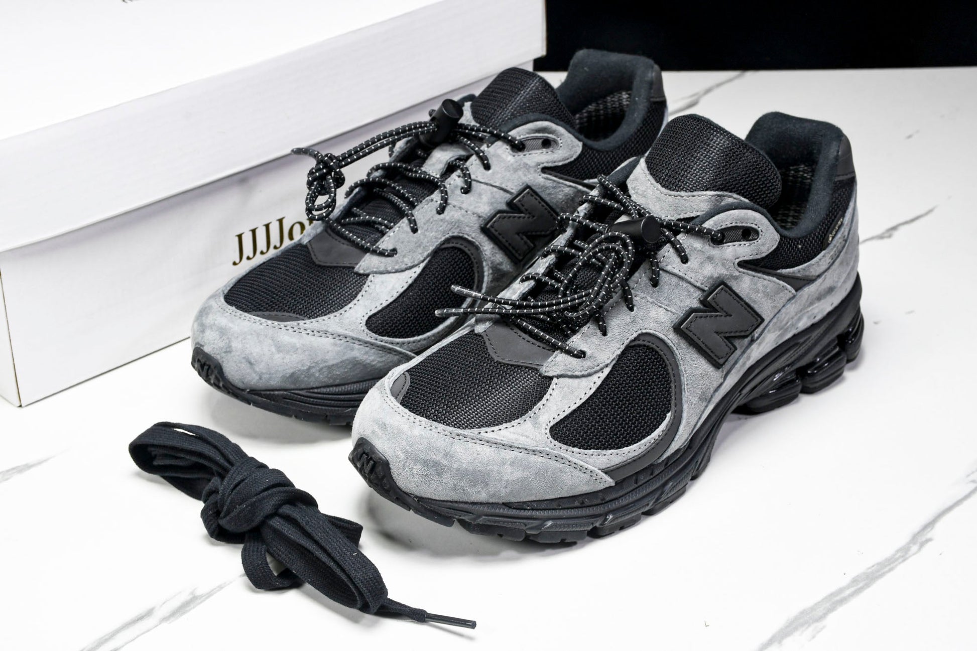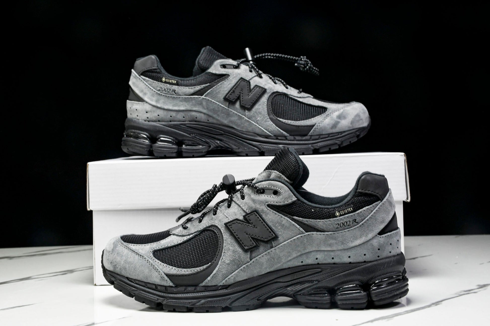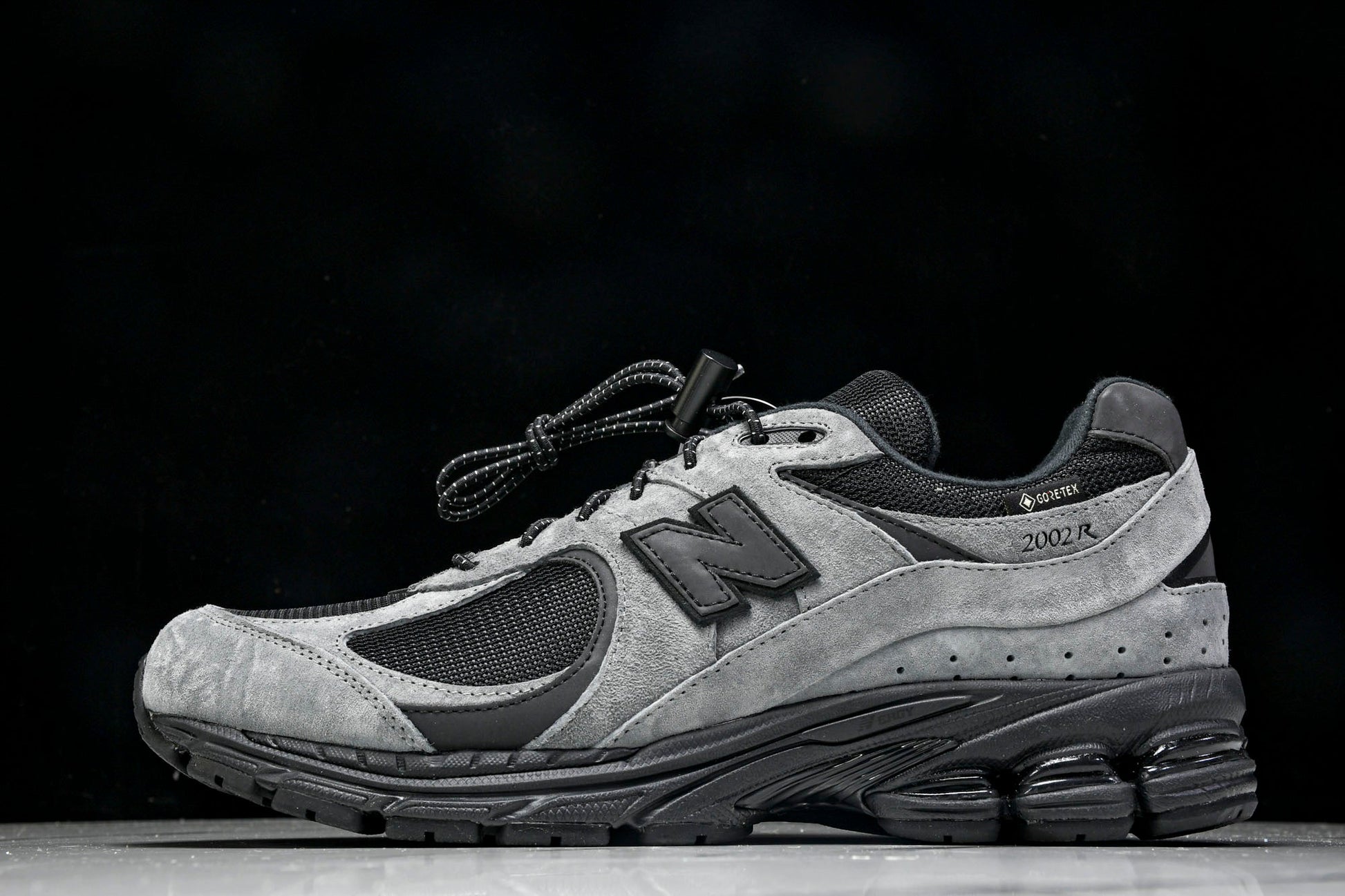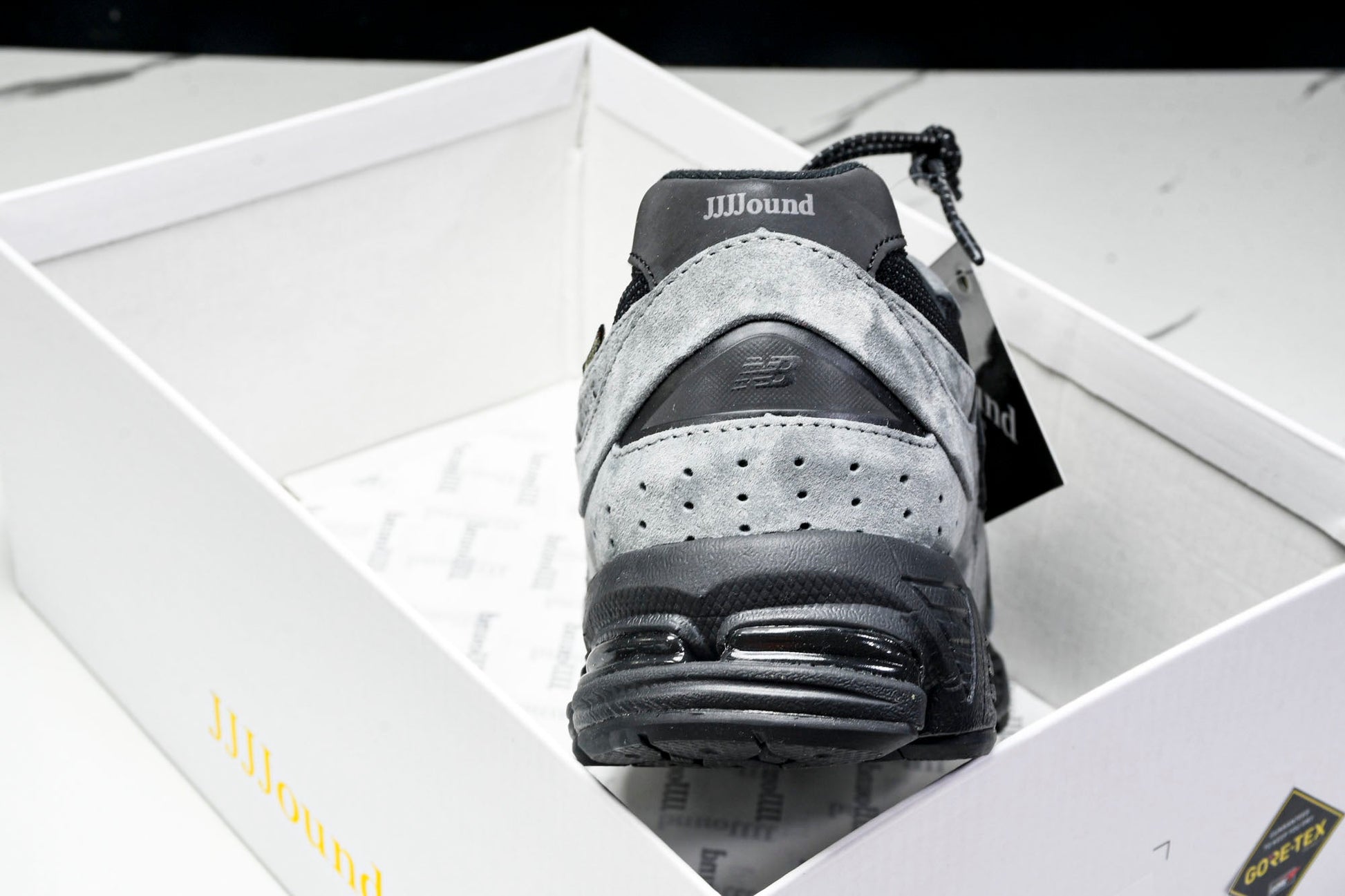 The NB 2002R x JJJJound Gore-Tex 'Charcoal'’ merges functional design with minimalist aesthetics, adapting the classic silhouette for winter conditions. A Gore-Tex lining ensures waterproof protection while maintaining breathability, complementing the charcoal and black leather-mesh upper. The black leather ‘N’ logo, discreet 2002R branding, and white Gore-Tex lettering add subtle detailing. Rugged yet refined, this collaboration balances utility and understated style.
