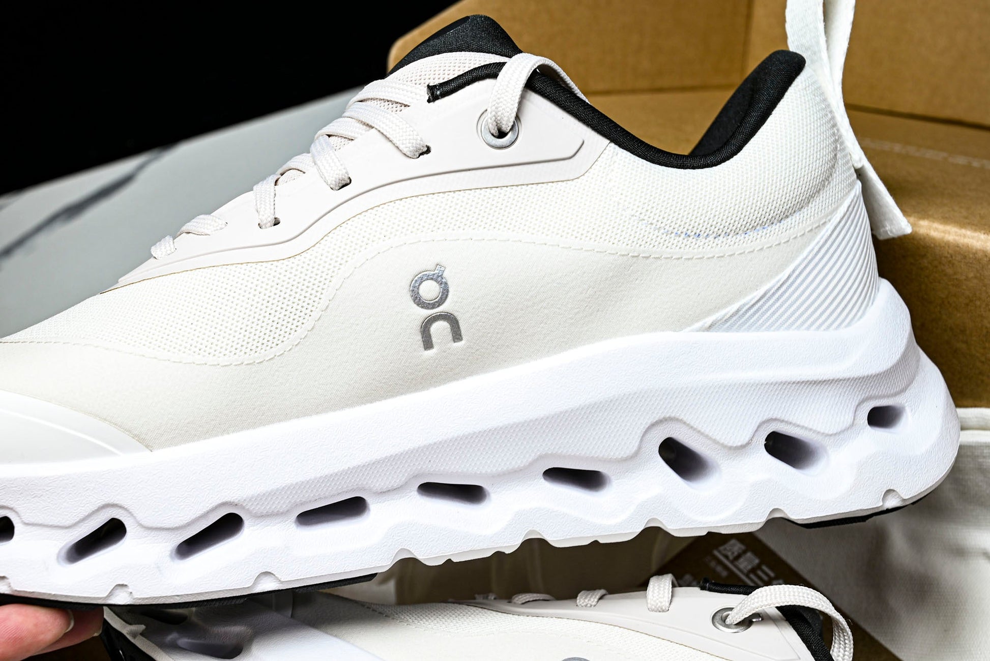 The LOEWE × On Cloudtilt merges Spanish avant-garde fashion with Swiss precision engineering for an everyday sneaker that embodies both luxury and innovation. Its upper features layered materials crafted from performance mesh and delicately woven recycled polyester, giving it a dynamic and modern aesthetic. Dual branding from LOEWE and On appears subtly on the tongue, underscoring the collaboration’s refined attention to detail. Underfoot, the Cloud midsole provides featherlight cushioning and smooth transitions, ideal for long days on the move. With its sculptural silhouette and exceptional comfort, the Cloudtilt elevates functional footwear into a piece of wearable art.