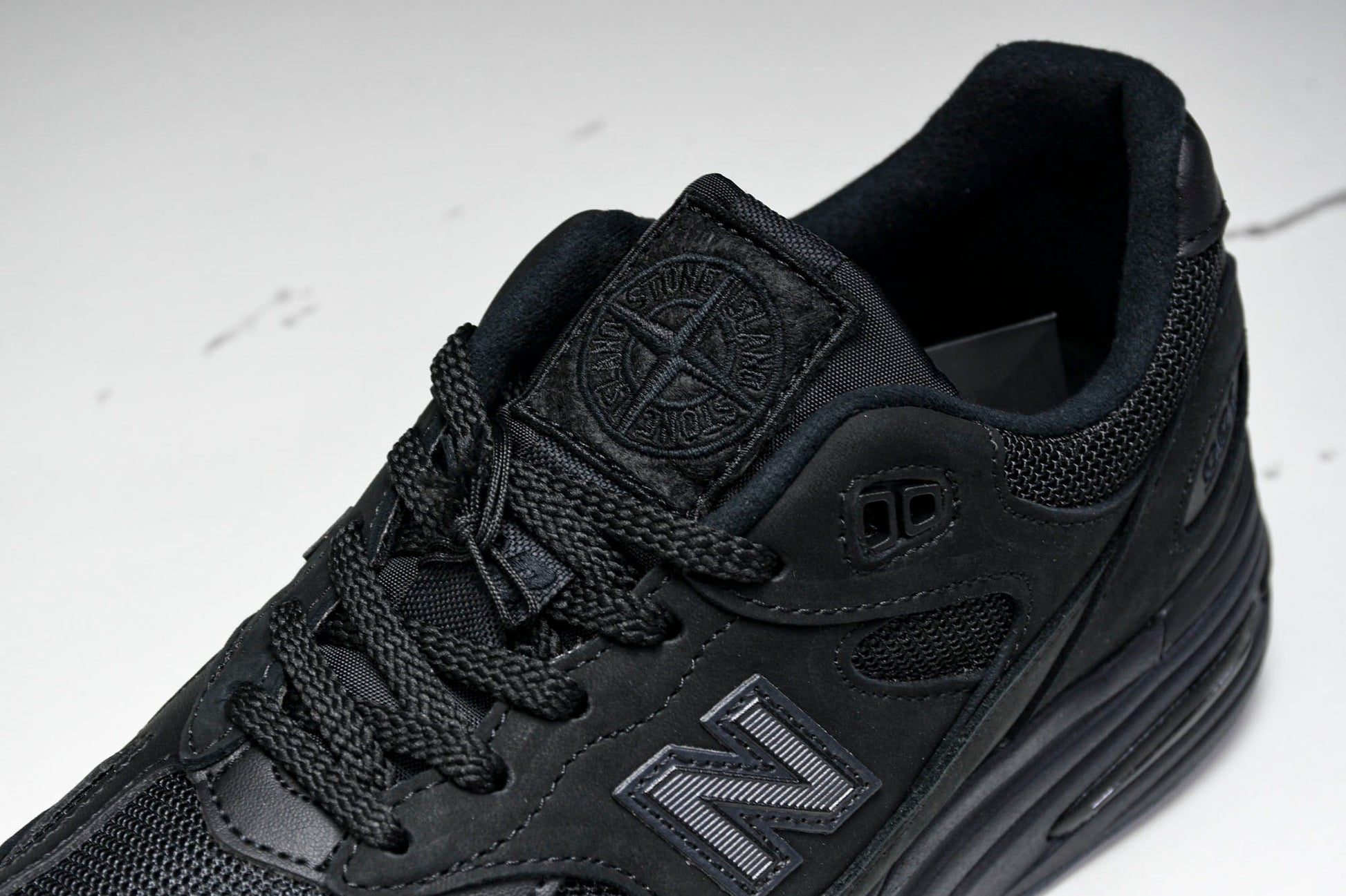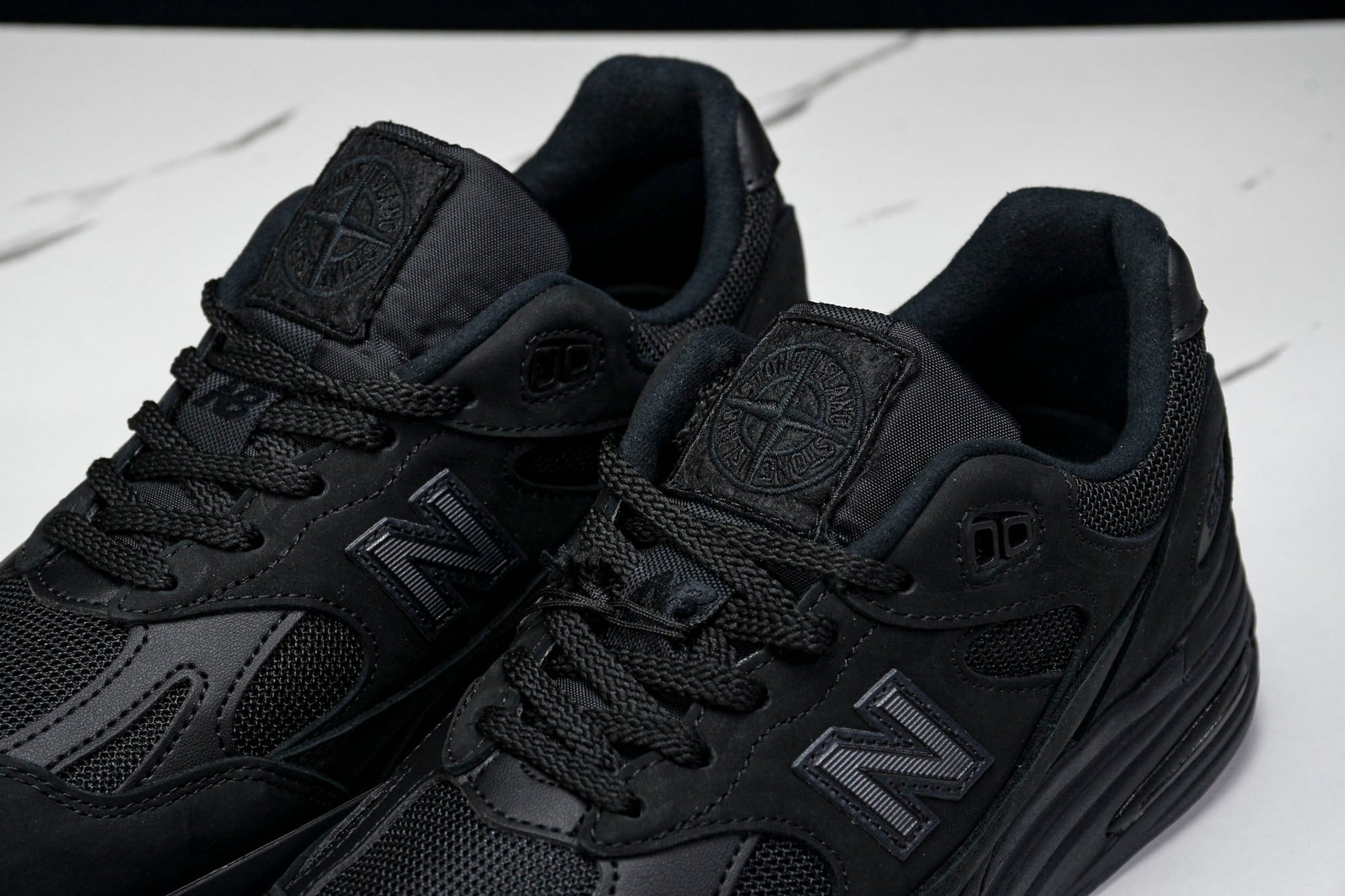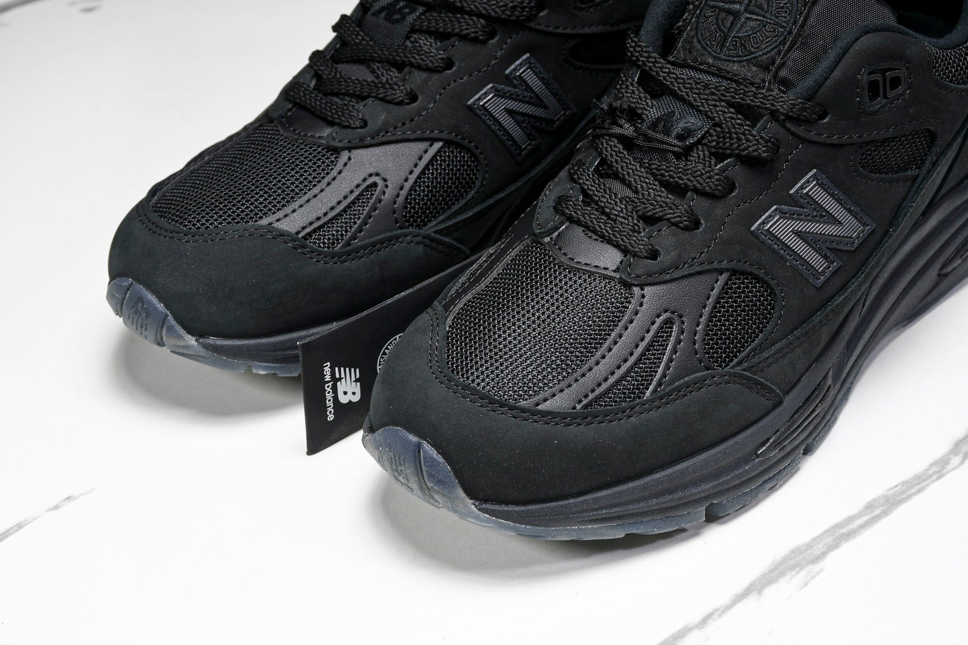 The NB 991v2 x Stone Island Made in England ‘Black’ debuts as part of the exclusive three-piece Ghost Pack, embodying a sleek, monochromatic aesthetic. Black mesh, leather, and nubuck overlays create a refined yet technical upper, highlighted by a ridged ‘N’ logo and Stone Island’s signature compass badge on the tongue. The sneaker’s midsole integrates signature NB technology for advanced cushioning, while a translucent outsole unveils an oversized Stone Island compass logo beneath. This fusion of heritage craftsmanship and cutting-edge innovation makes it a standout in both sneaker and streetwear culture.