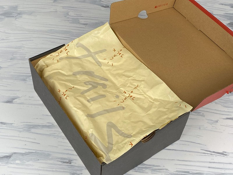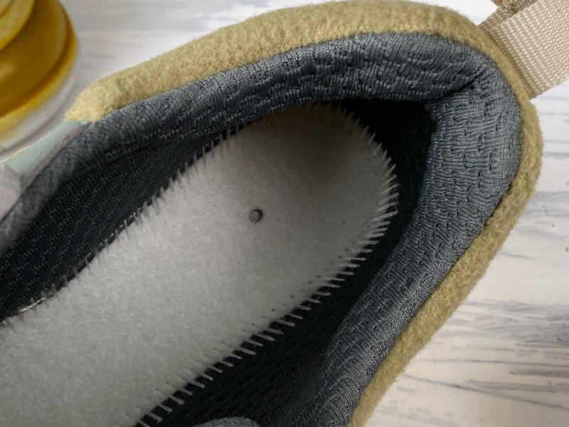 This AM270 consists of a mesh upper with tumblr leather and suede overlays. A gold midsole, green tongue with attached lace locks, and Cactus Jack branding on the heel tabs completes the design.