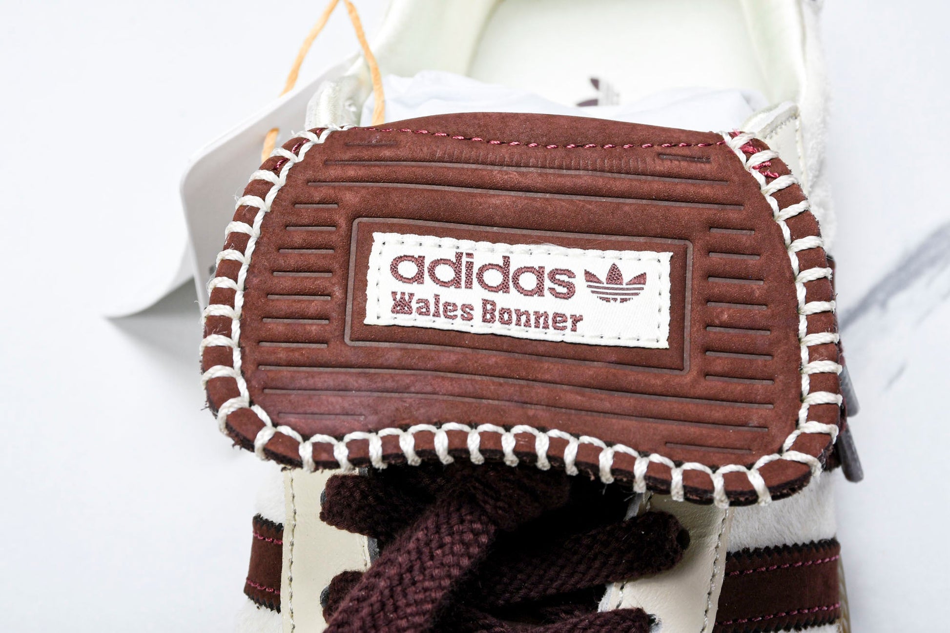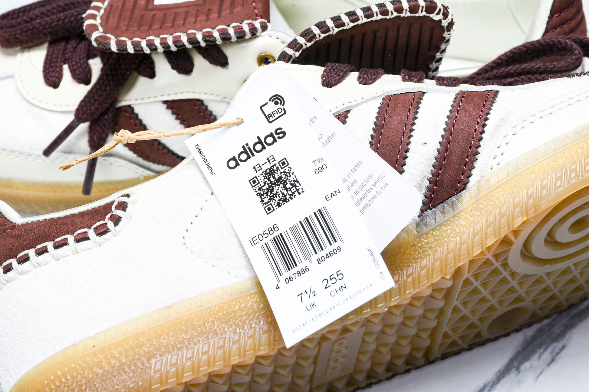 The Samba x Wales Bonner 'Pony Tonal Cream White' is part of the iconic collaboration between the stripes and London-based label Wales Bonner. This football training shoe elevates the classic Samba with shaggy mohair on the upper, offering a touch of luxury. The Cream White and Mystery Brown colorway channels a '70s varsity sports aesthetic, while leather details in Cream White, including the lace cage and toe overlays, add sophistication. The large embossed folding tongue adds an eccentric touch to the iconic silhouette. The iconic serrated stripes and gum rubber outsole complete the look, making it a stylish and functional addition to your collection.
